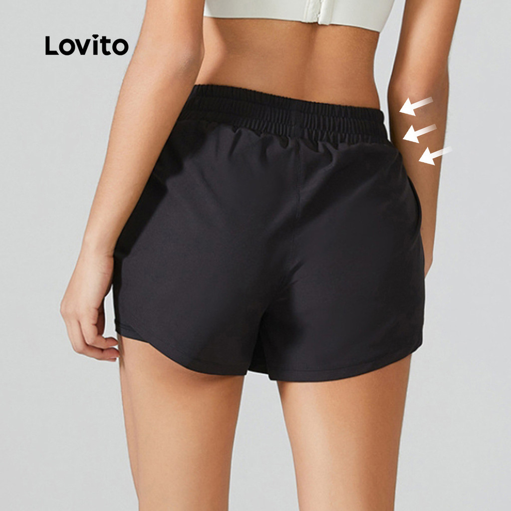 Lovito Short Esportivo com Bolsos 2in1 Dupla Camada Amarrado Secagem Rápida para Corrida e Fitness LNL83116
