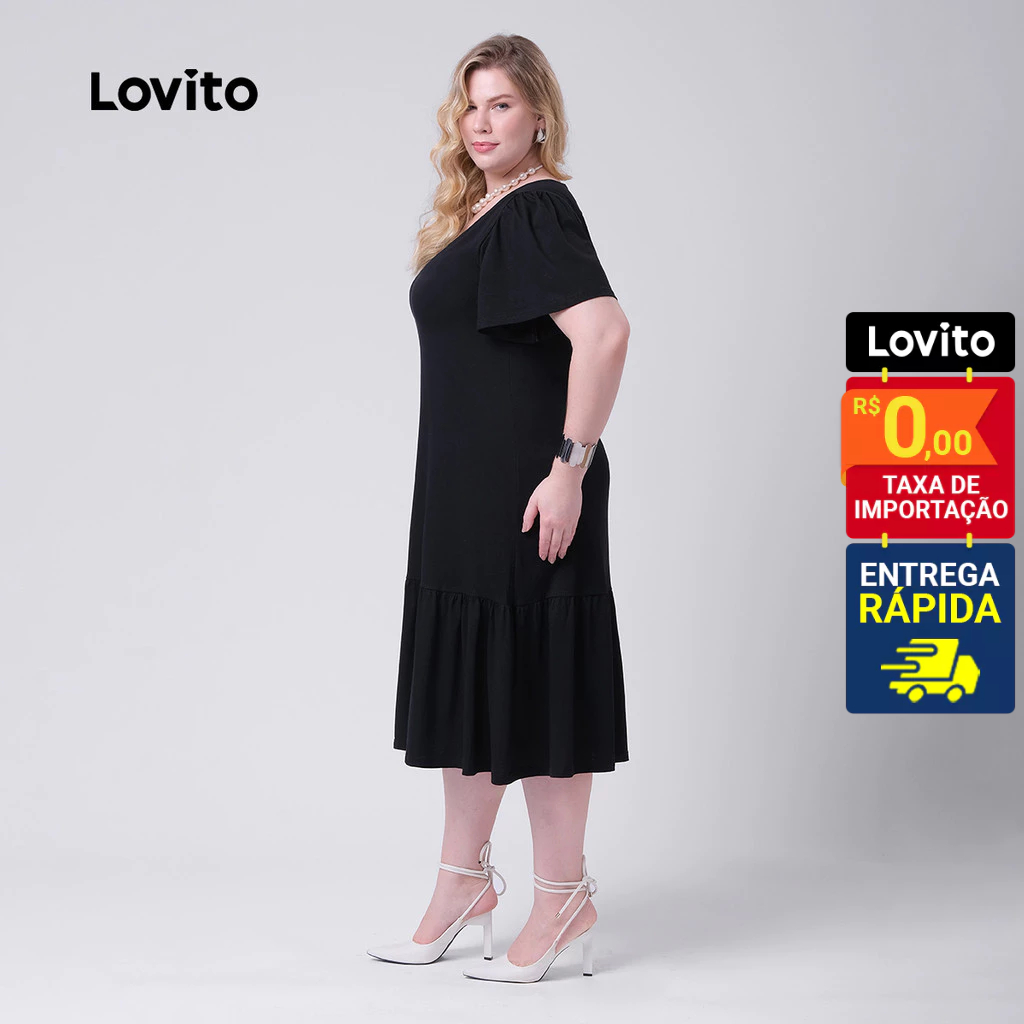 Lovito Vestido Feminino Midi Decote Redondo Plus Size LB73BRL102
