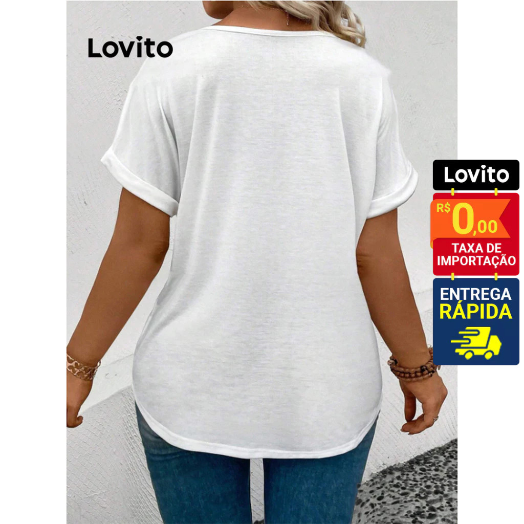 Lovito Camiseta Básica Casual para Mulheres LBL11023