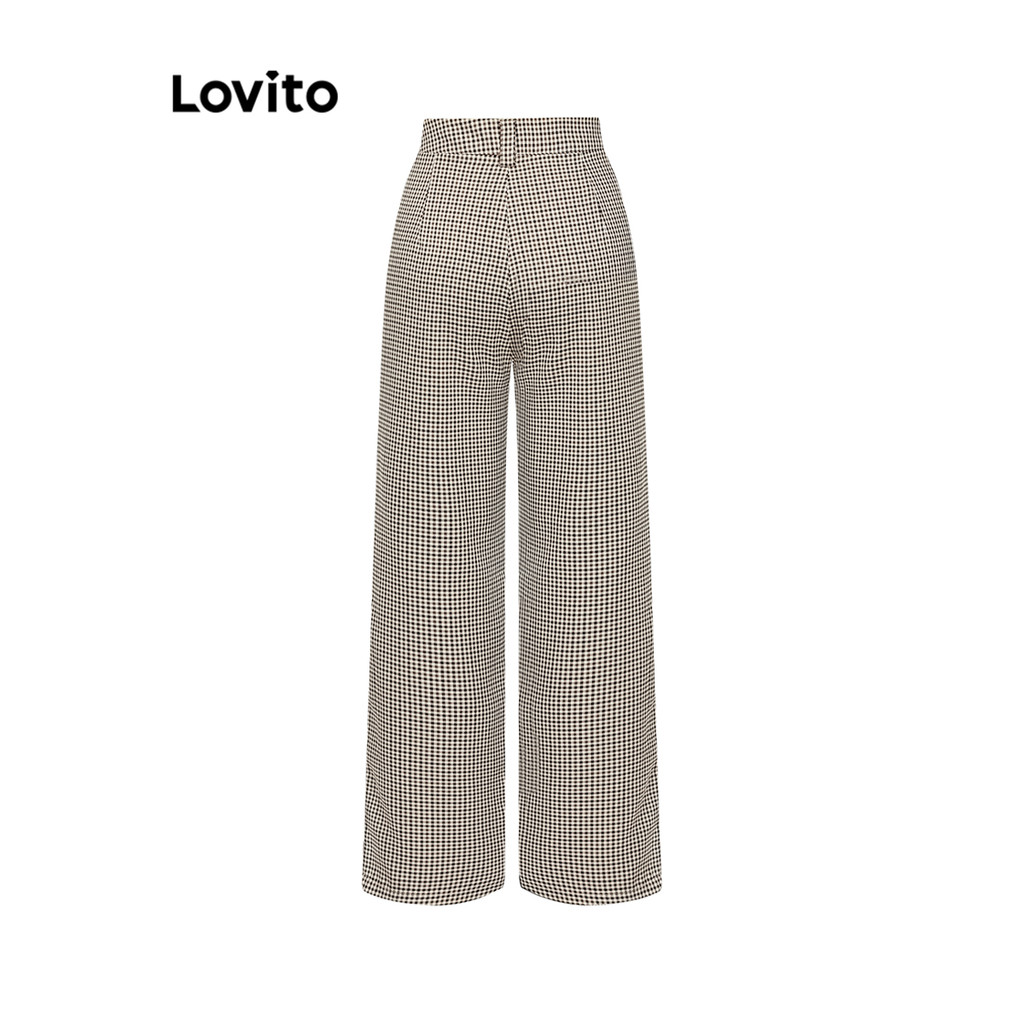 (KOL‘s pick) Lovito Casual Calça Feminina Gingham com Botão L70AD049 (Multicolorido)