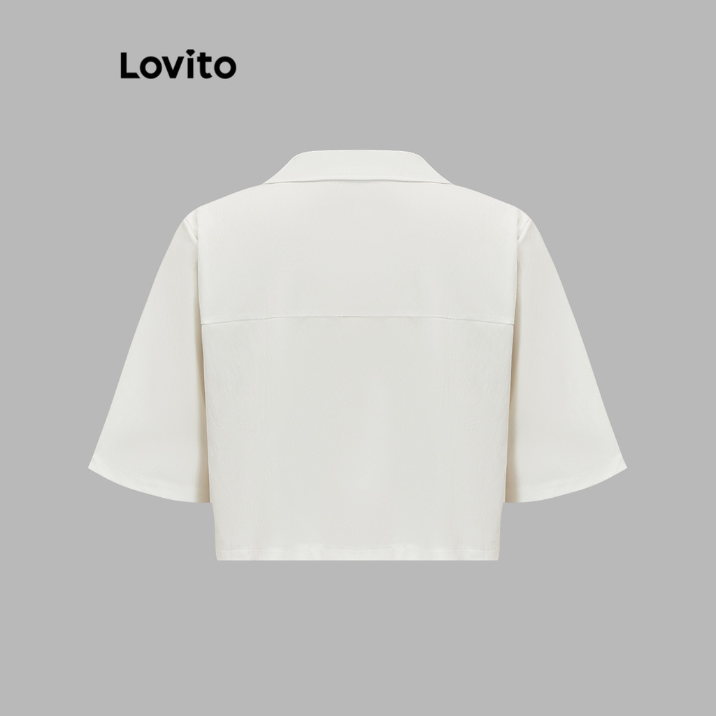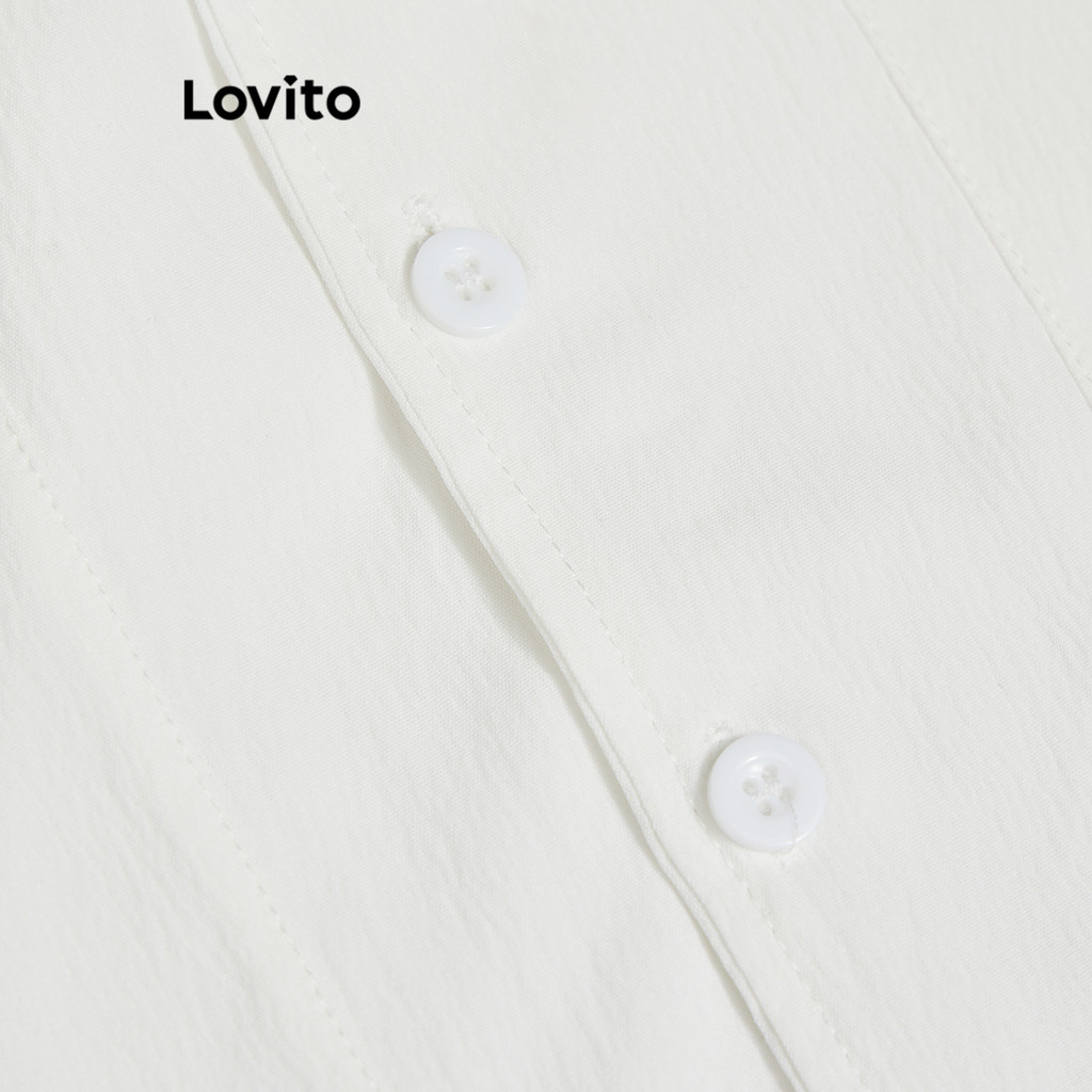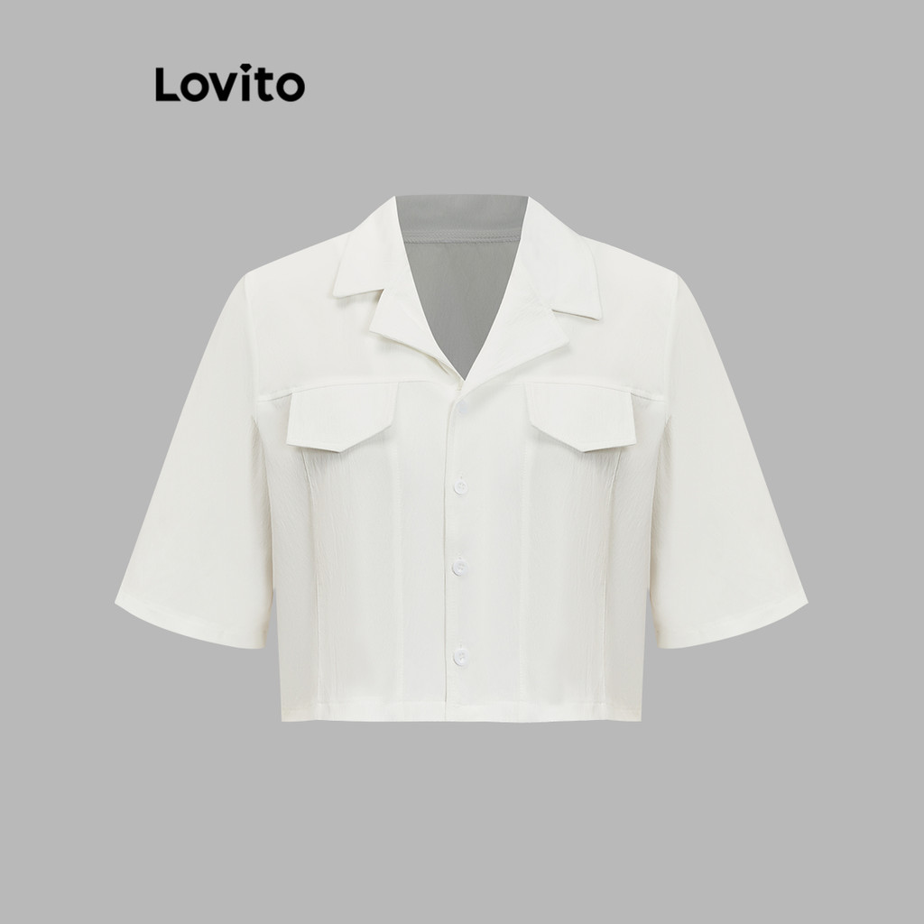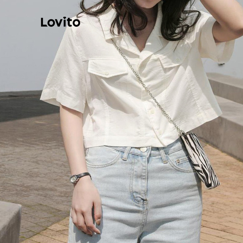 (LIVE STREAM SALE) Lovito Blusa casual de bolso falso com botão liso para mulheres L82AD020