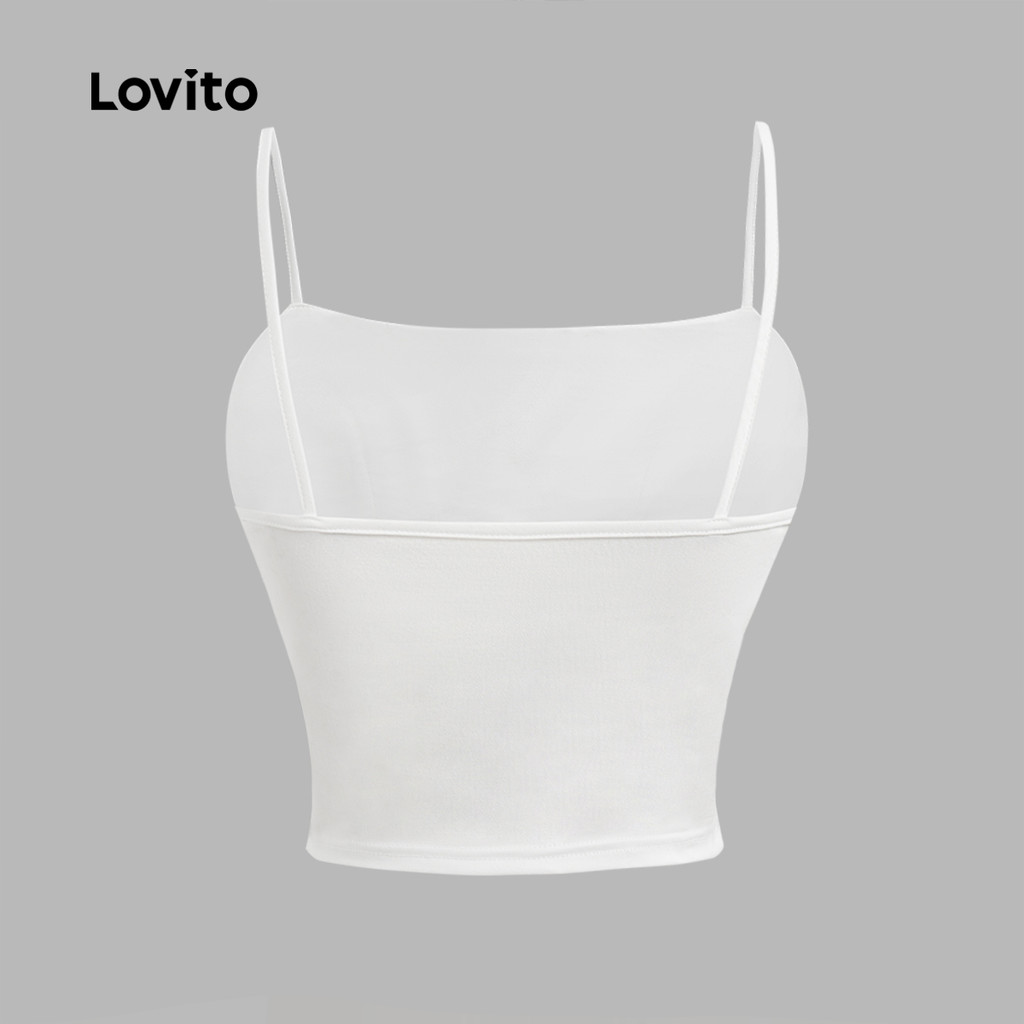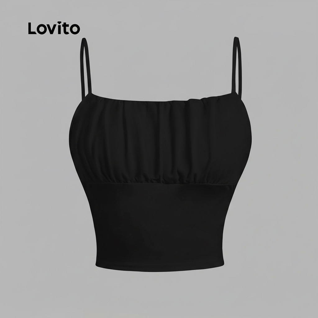 Lovito Top Casual Liso Franzido Verão/primavera Regata Para Mulheres L129ED544