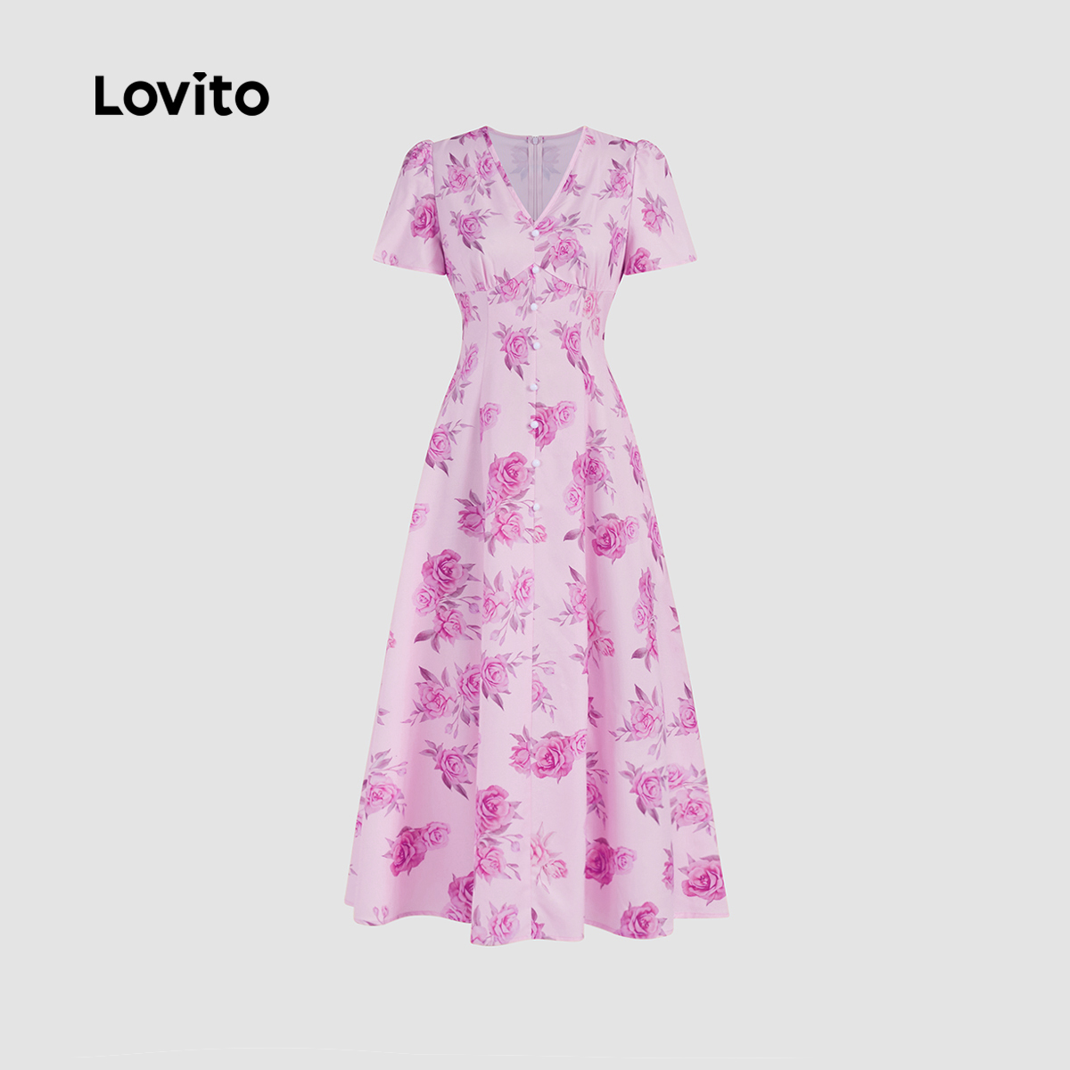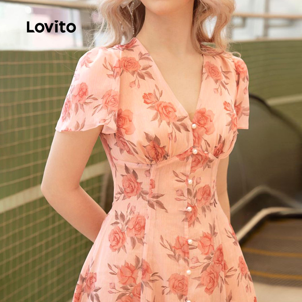 Lovito Vestido Casual Feminino Com Estrutura Floral E Botões Frontais Vestido De Verão/primavera L131LD1193