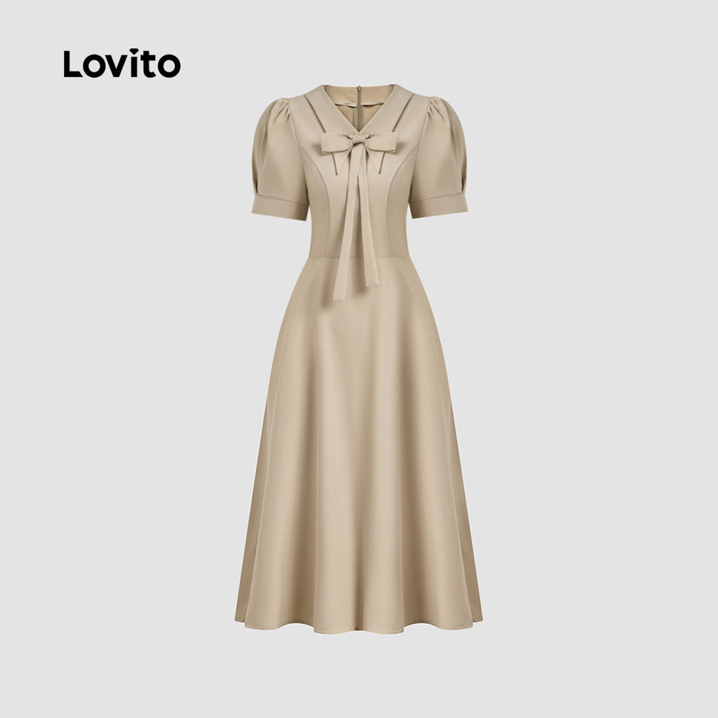(NEW) Lovito Vestido Casual com Laço Primavera/verão Camurça para Mulheres L149ED1223