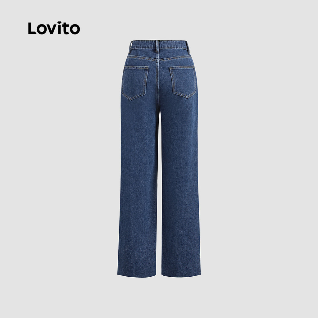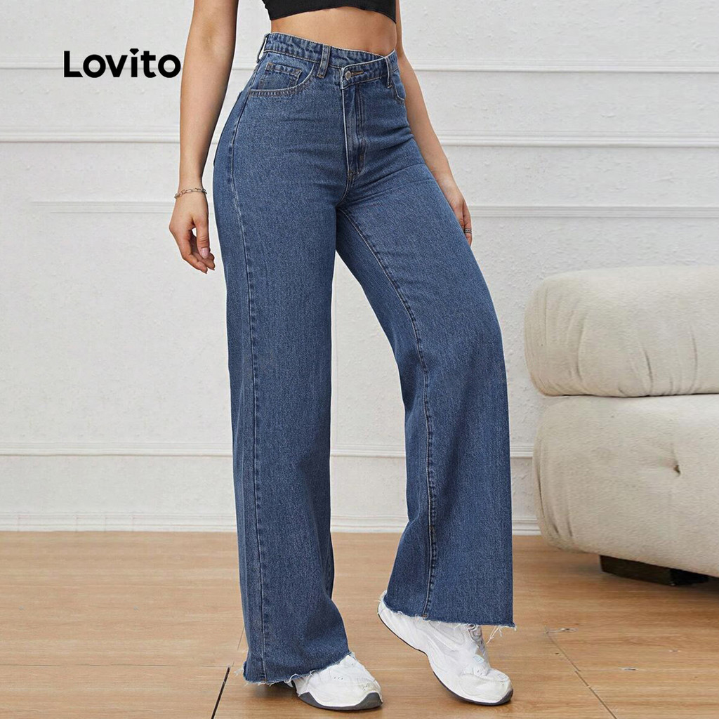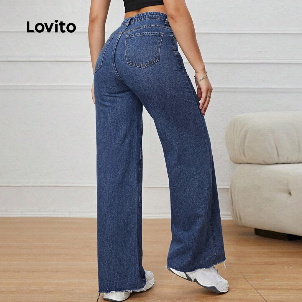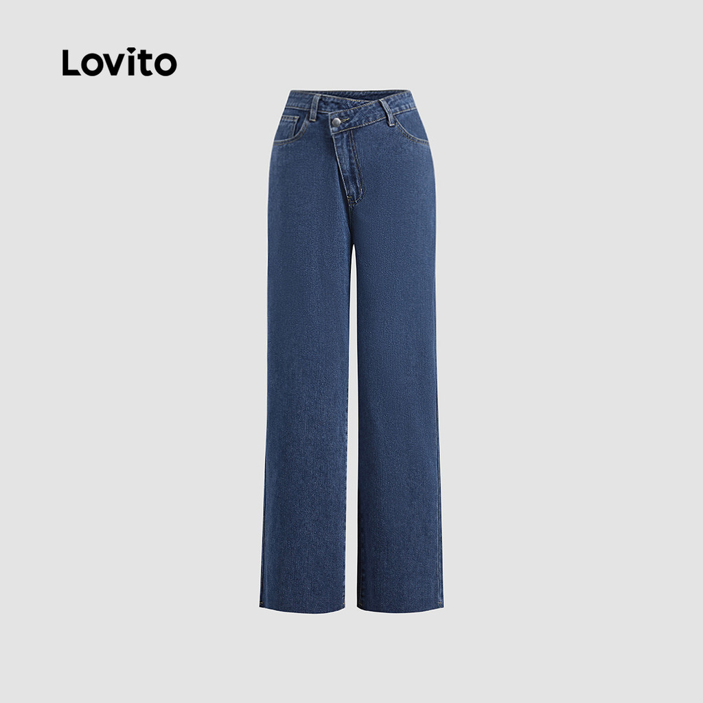 Lovito Calça Jeans Casual Feminina Liso Assimétrica Verão/primavera L123ED232