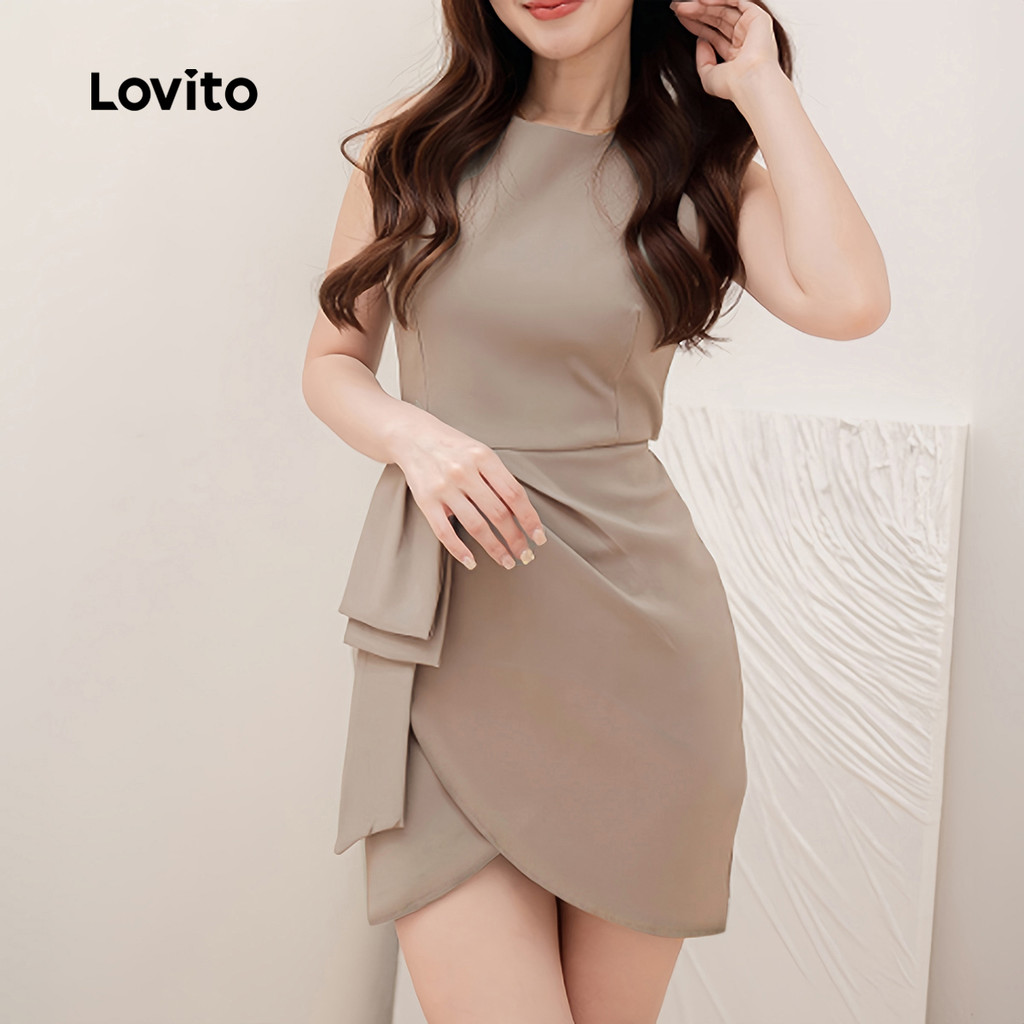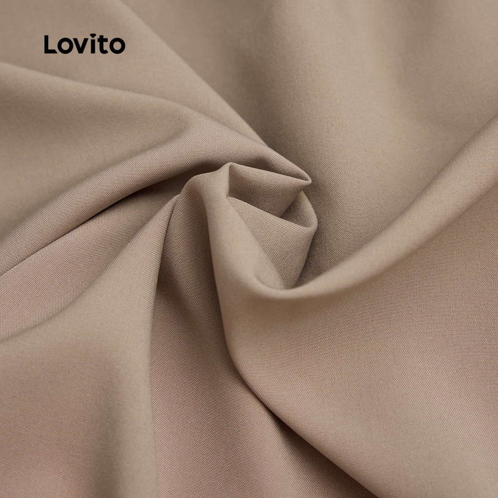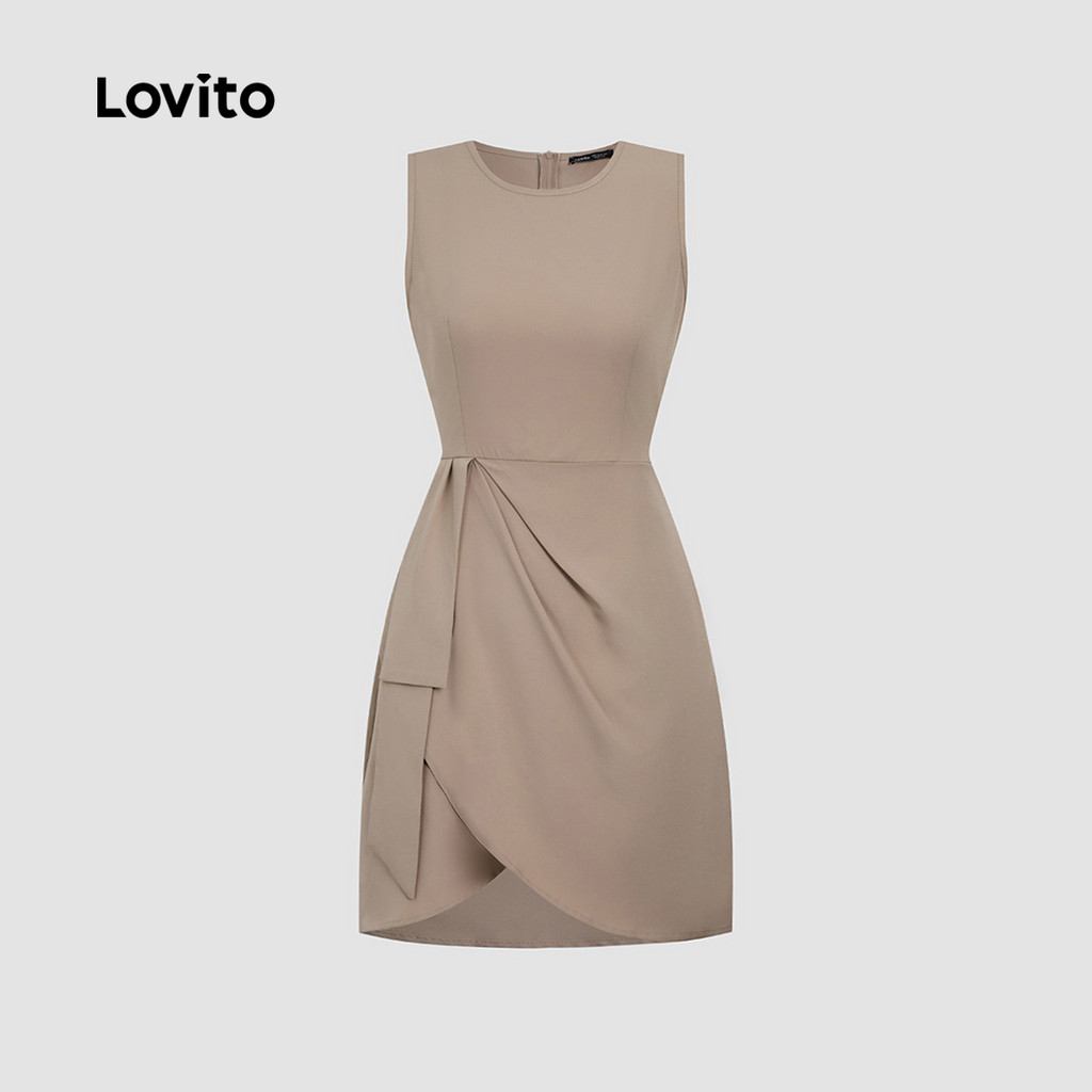 Lovito Vestido Elegante Simples Assimétrico Primavera/verão Vestido Cáqui para Mulheres L155ED1783