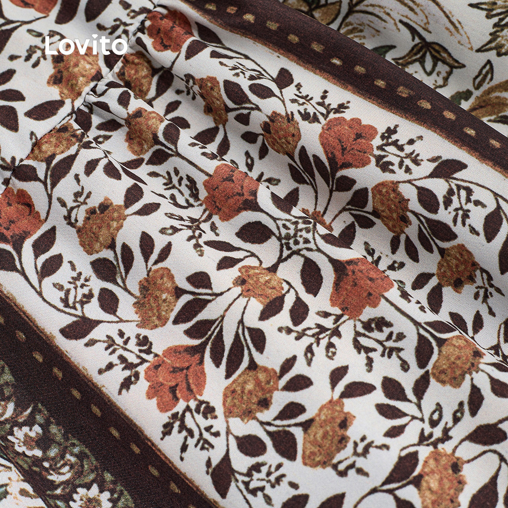 Lovito Vestido Boho com Pregas Linha Estruturada Vestido de Primavera/verão para Mulheres L138ED154