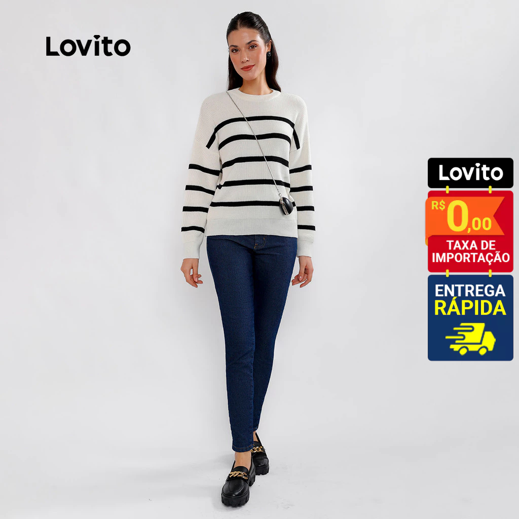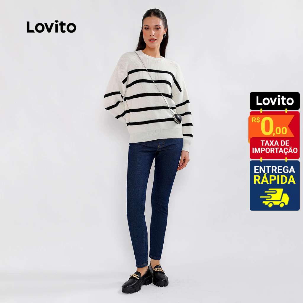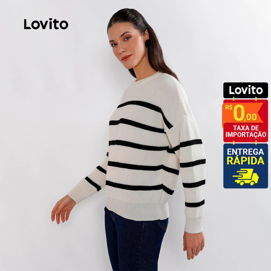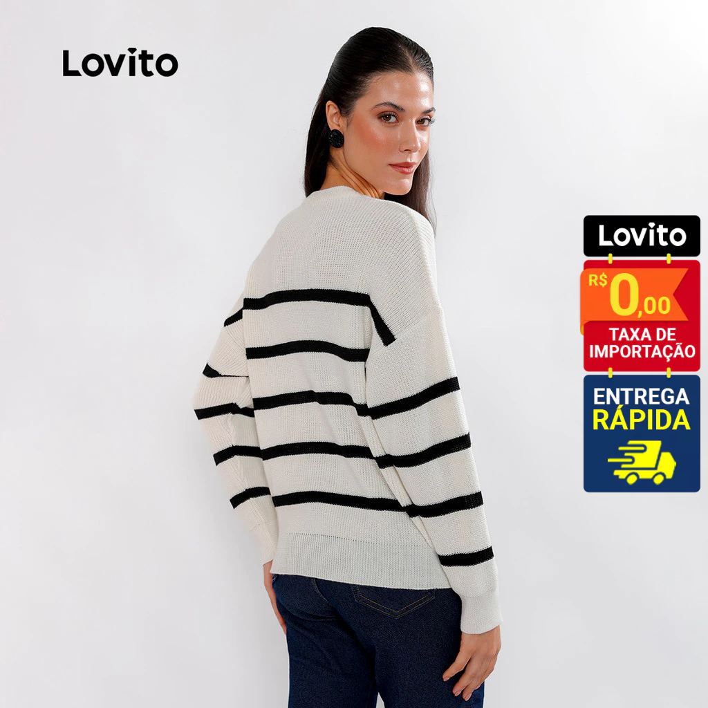 Lovito Suéter Feminino de Tricô Listrado Manga Longa L32UD004