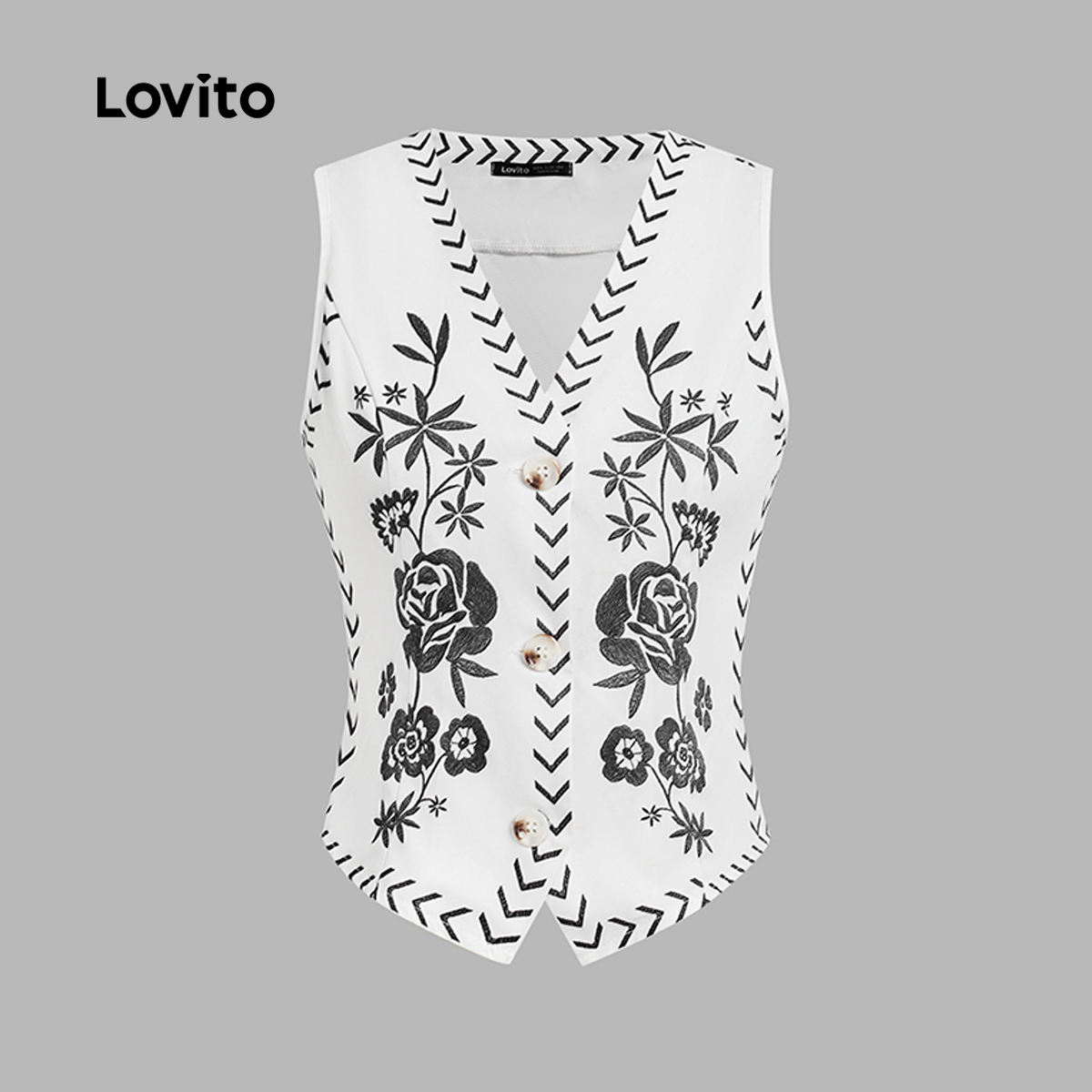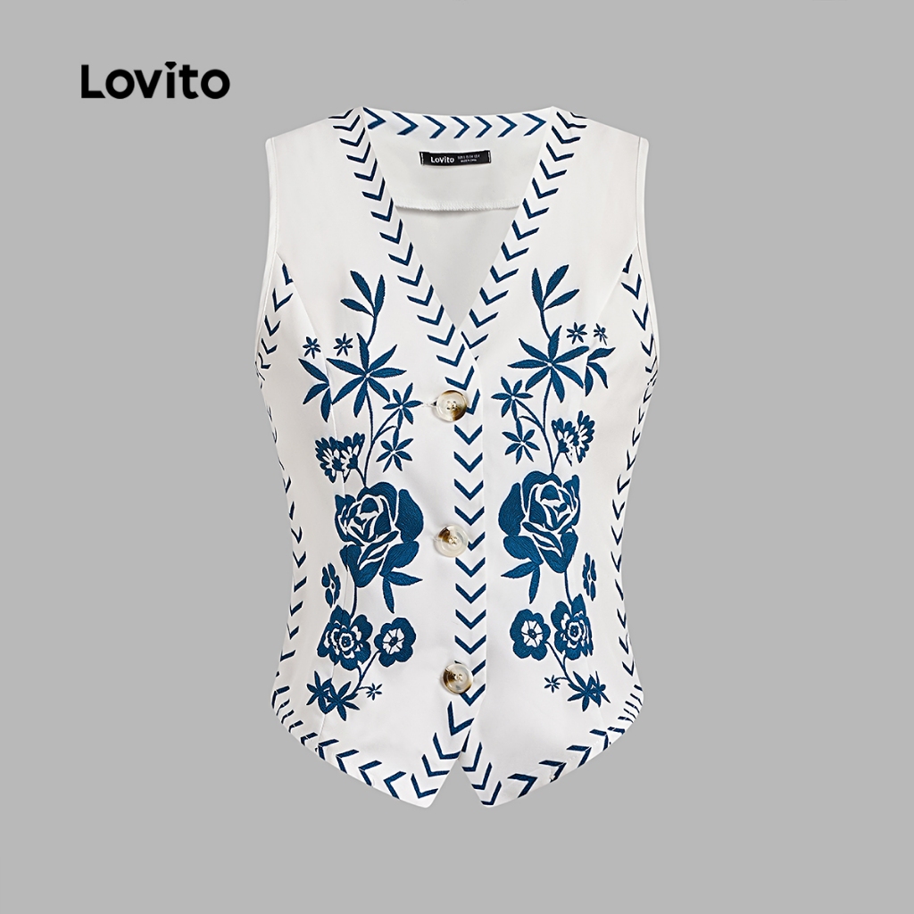 Lovito Top Boho Com Botões Leve E Respirável Primavera/verão Para Mulheres L137ED229