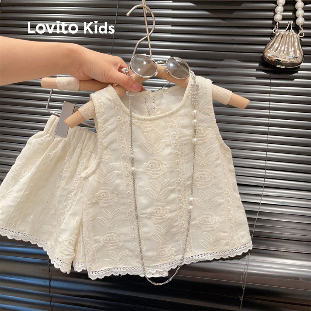 Lovito Kids Conjunto Casual de Shorts Sem Costas para Primavera/verão Conjunto de Shorts brancos LNL115139