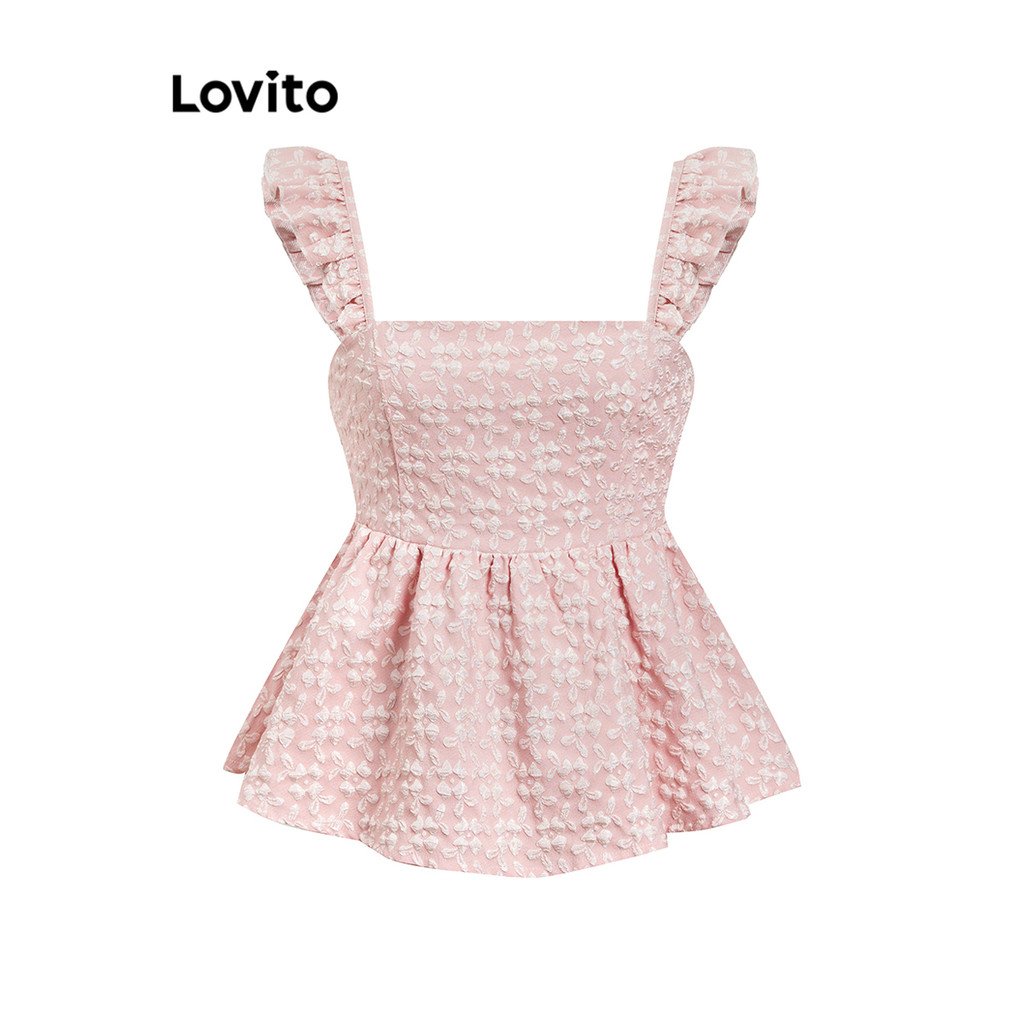 Lovito Regata Casual De Verão Com Babados Em Jacquard Para Mulheres L109MD587