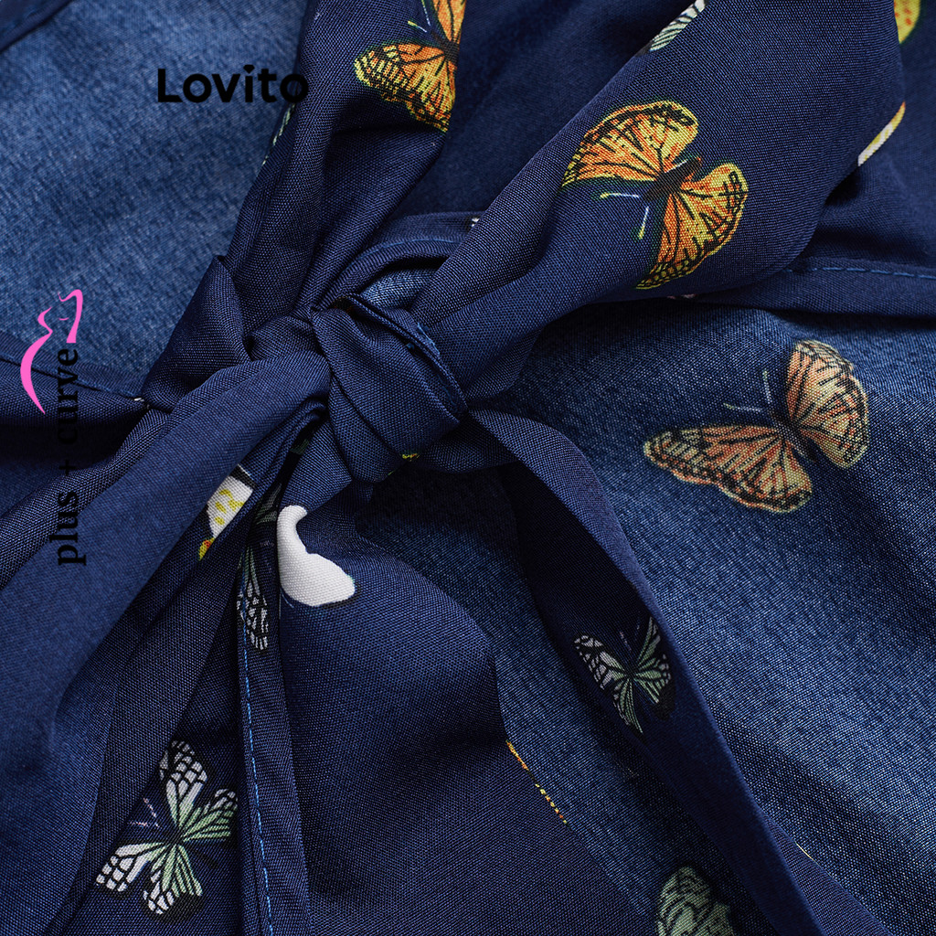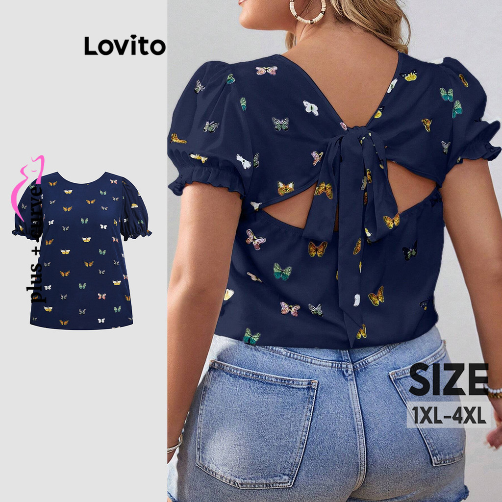Lovito Blusa Curva Plus Size Blusa Casual Com Nó Borboleta Para Mulheres LBL19347