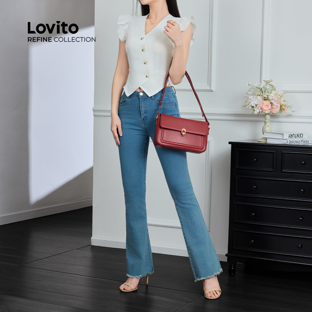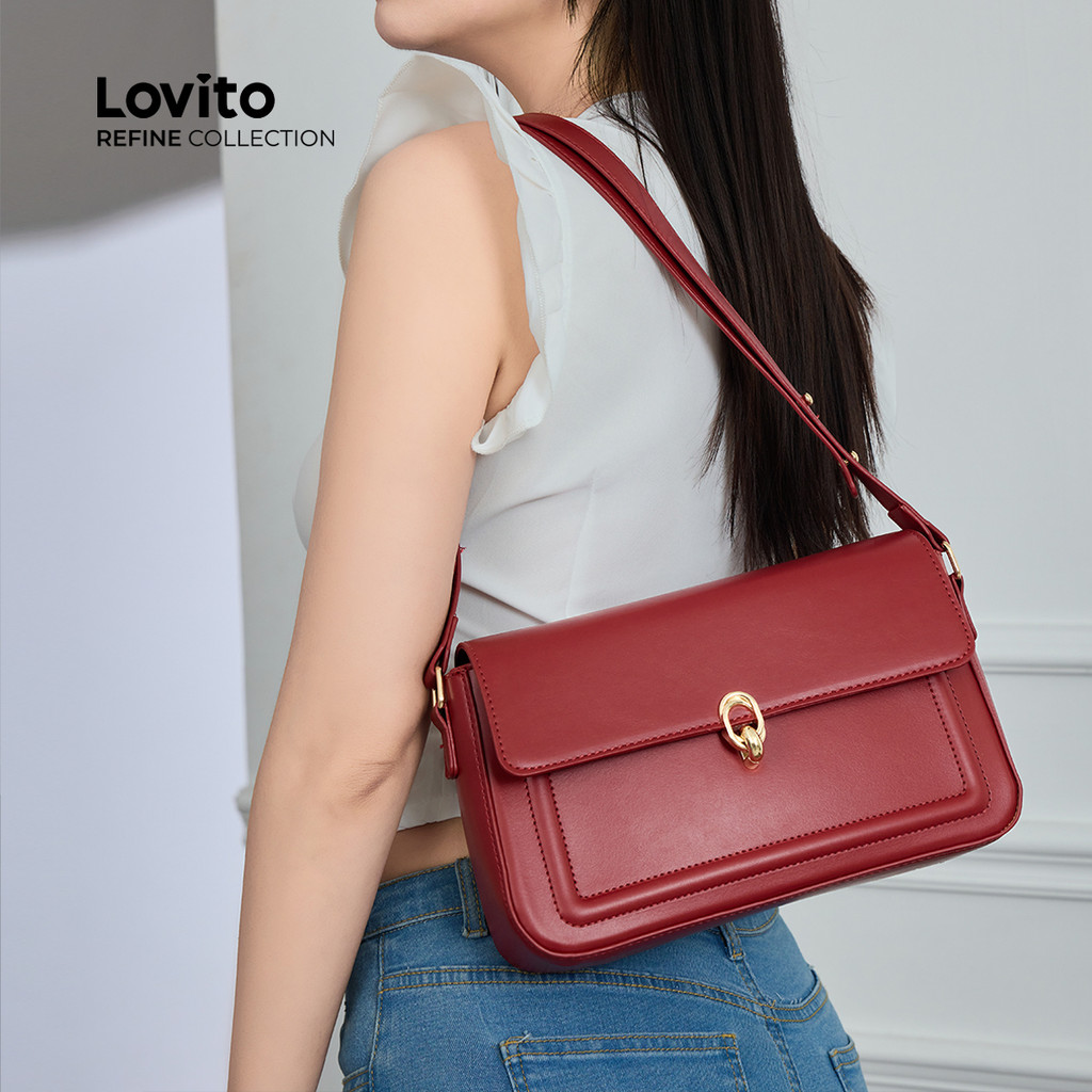 (Lovito Refine) Casual liso pequeno quadrado Bolsa feminina LFAR9079