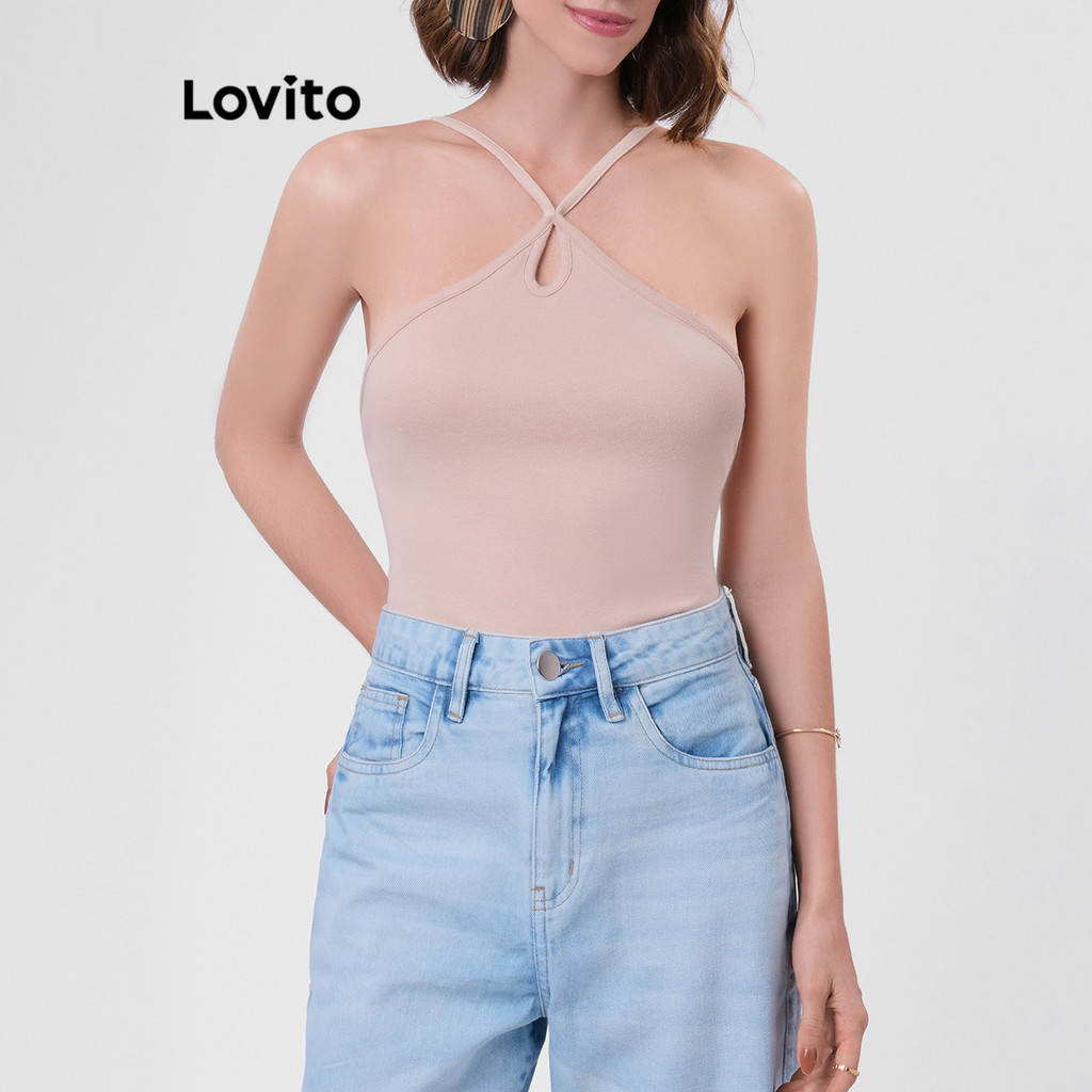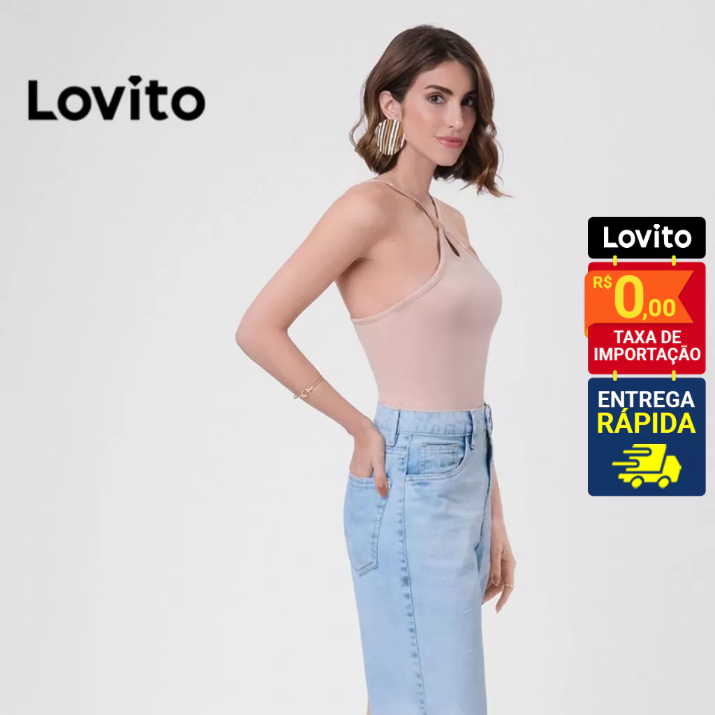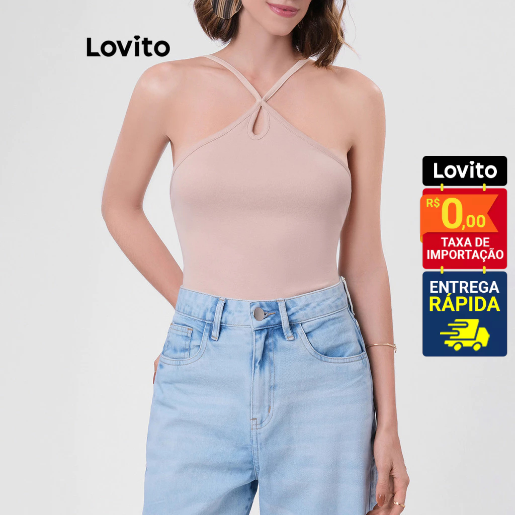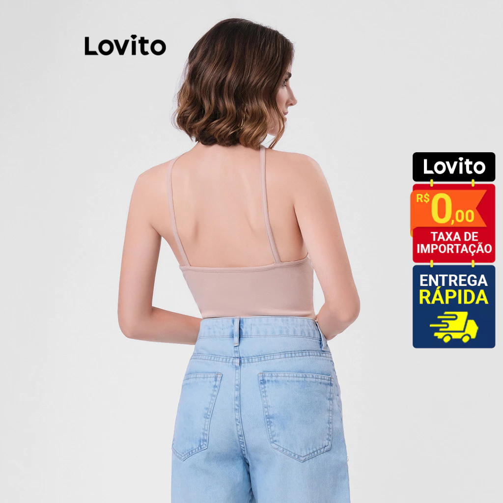 Lovito Body Feminino com Gota Frontal Alças Finas Básico LB40BRL069