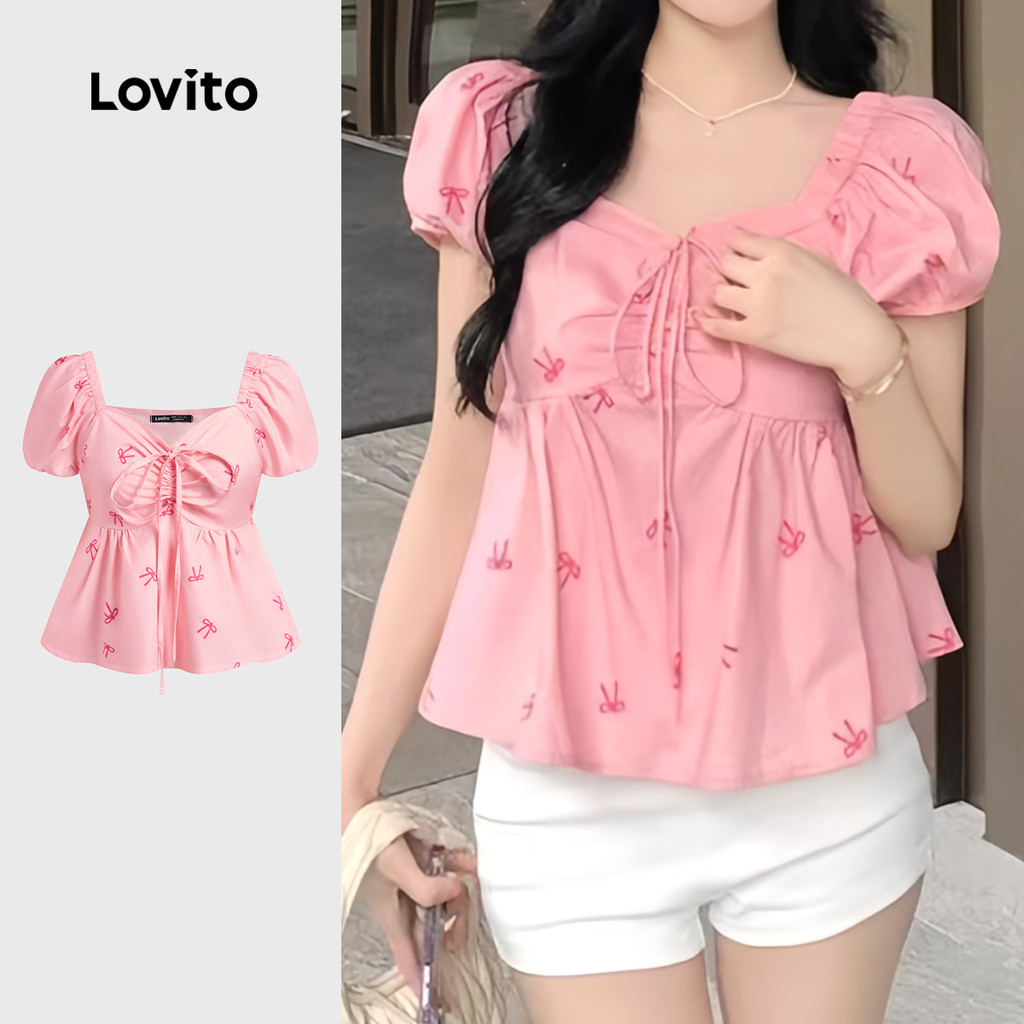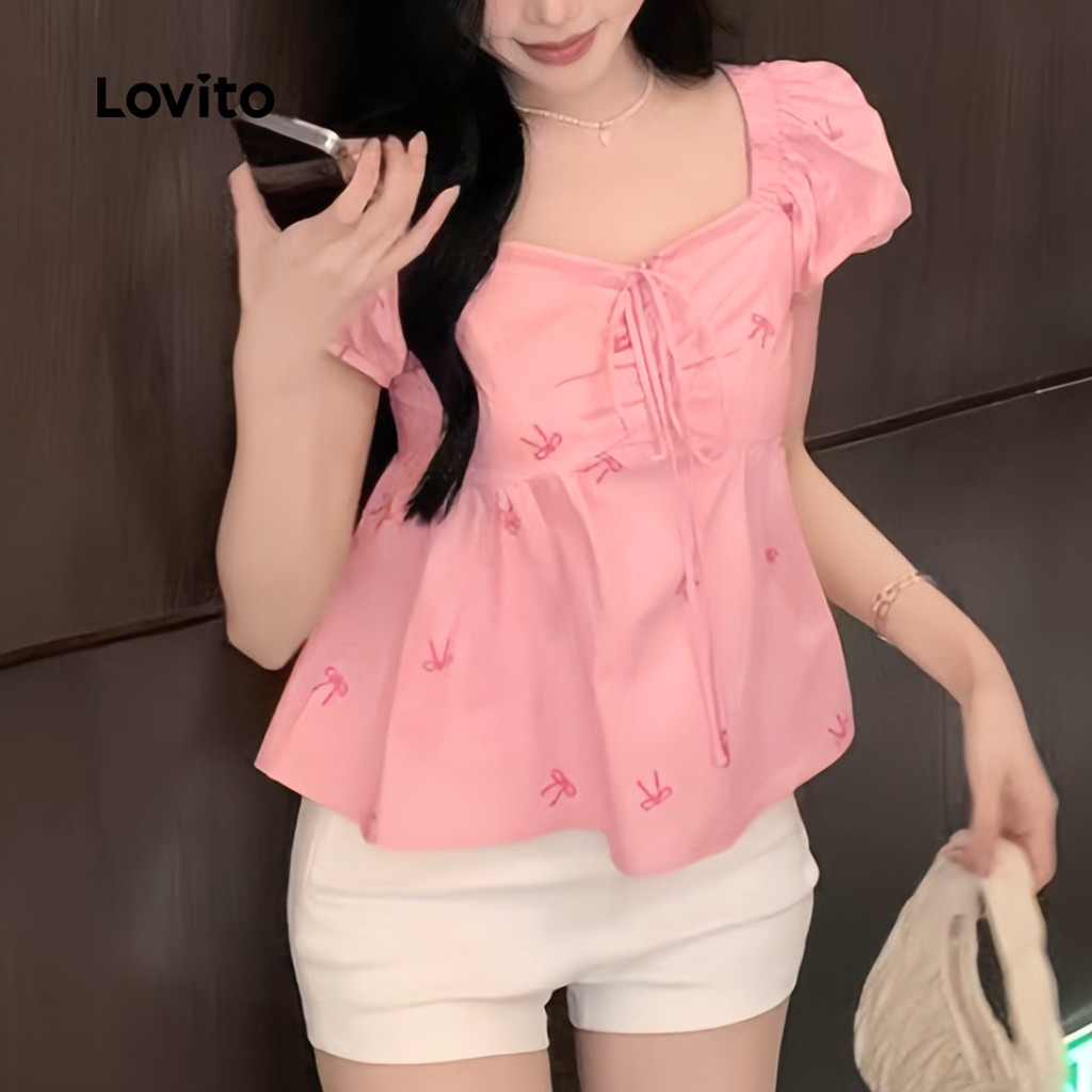 Lovito Blusa Fofa De Desenho Animado Com Cadarço Blusa De Verão/Primavera Para Mulheres L128ED206