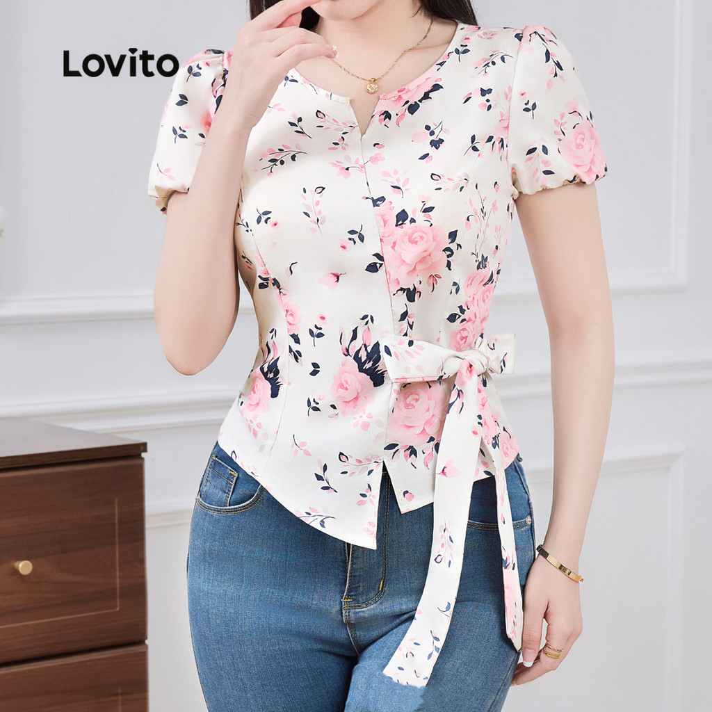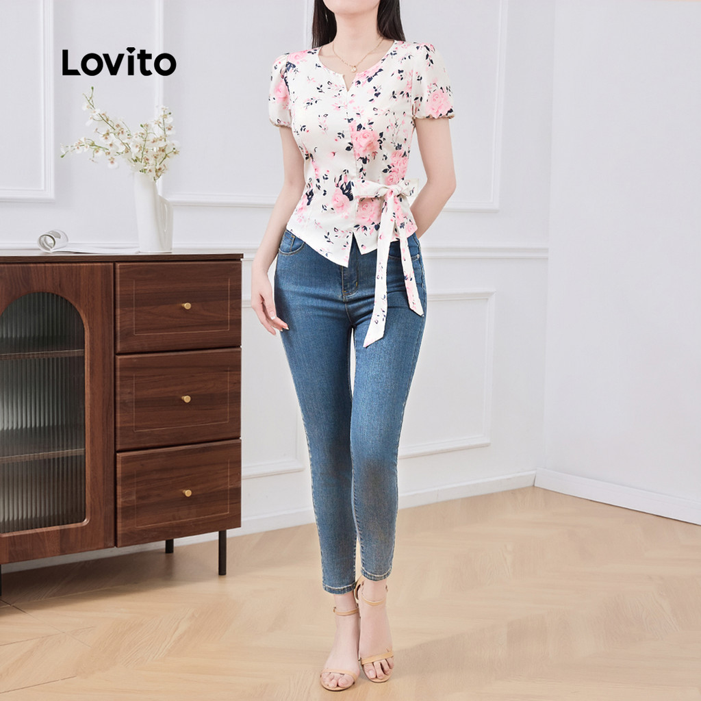 Lovito Blusa Boho de Primavera/verão com Amarração para Mulheres L143ED133