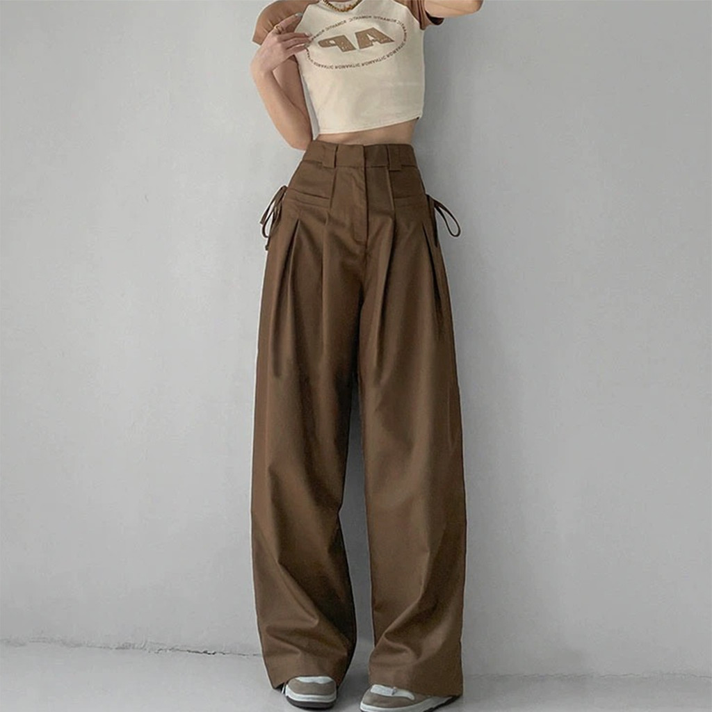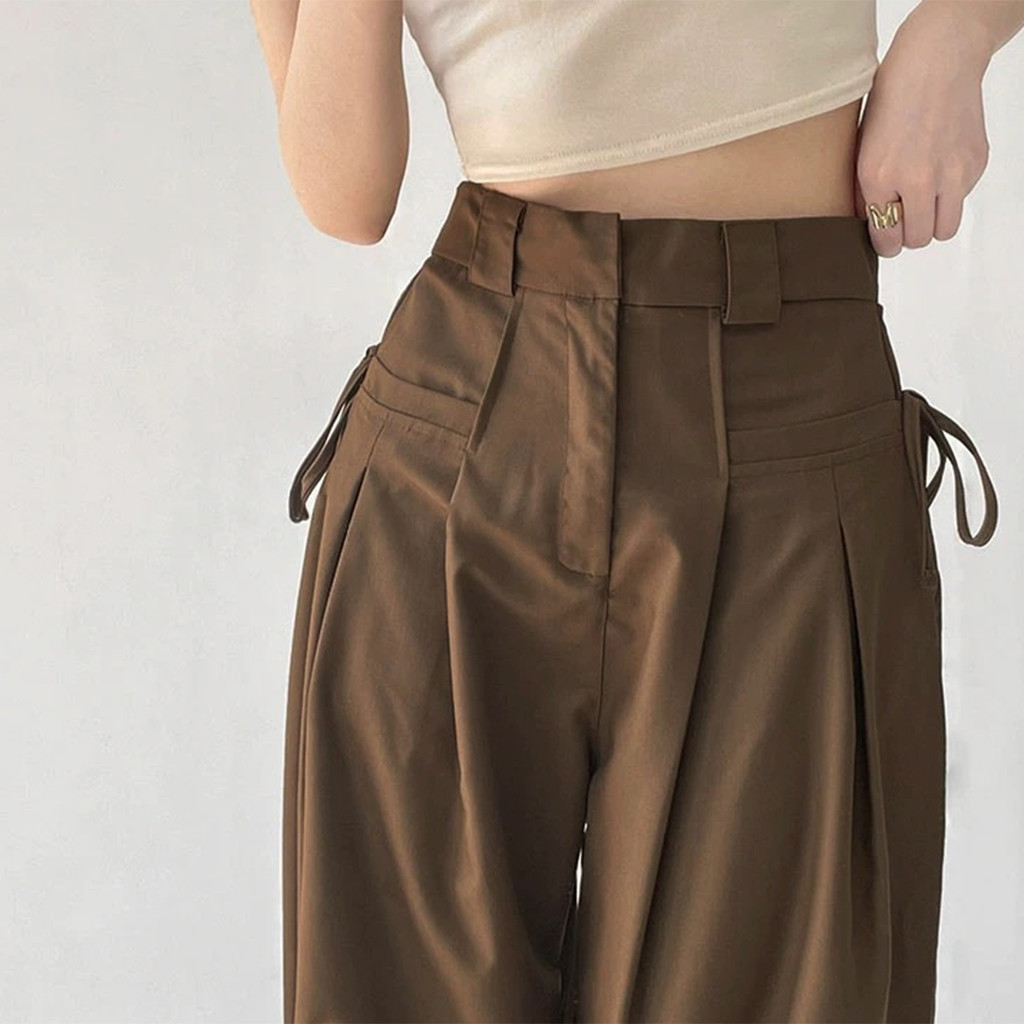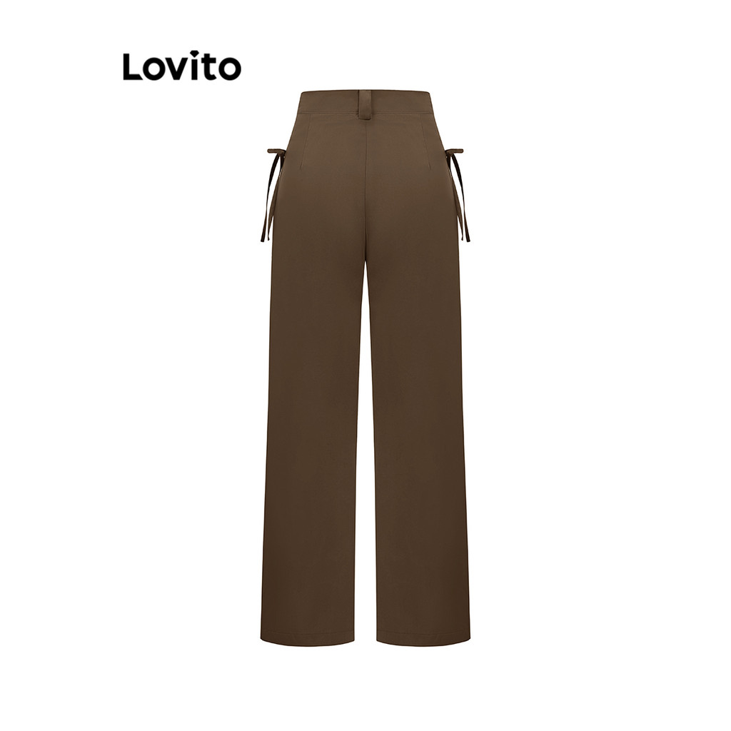 Lovito Calça Feminina Casual Lisa Com Gravata E Cordão Frontal Drapeada L102AD026