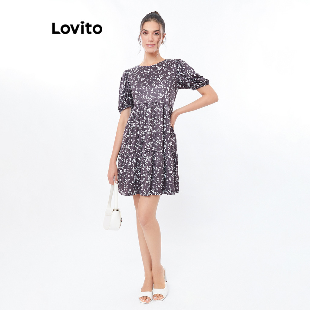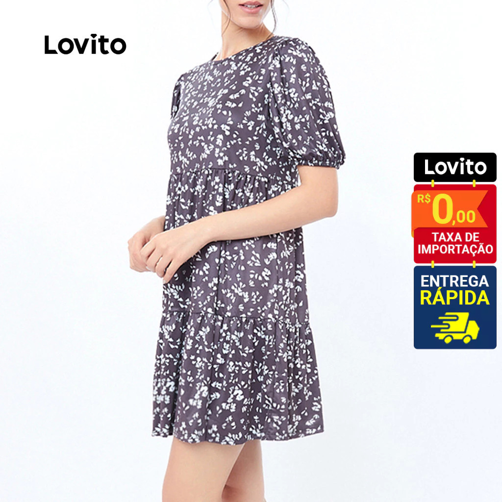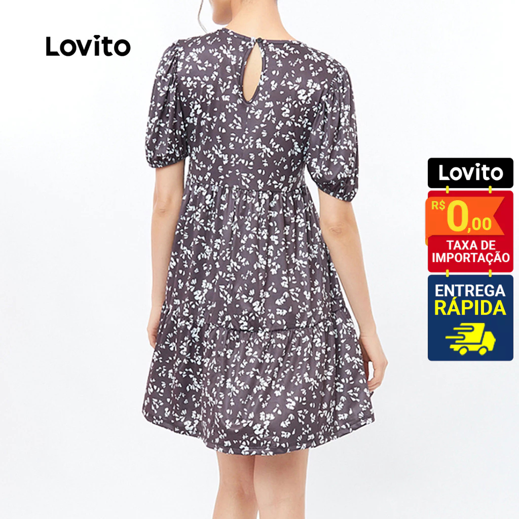 Lovito Vestido Curto Com Manga Curta Rodada Basica Feminino LB213BRL242
