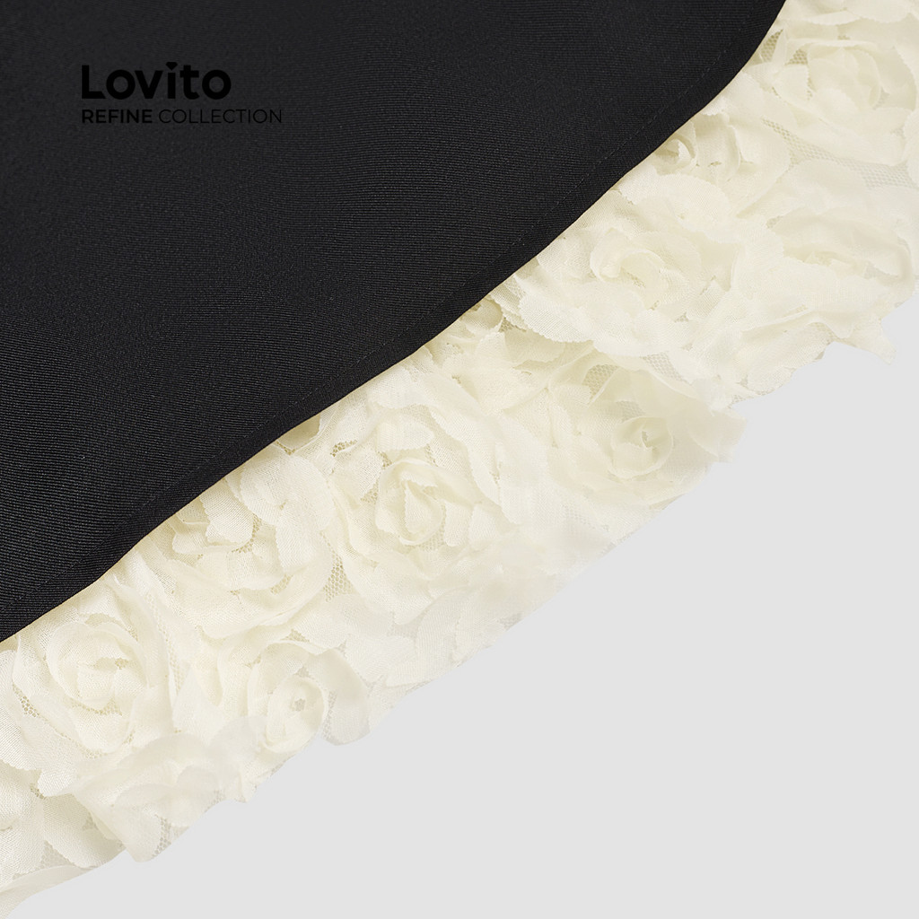 (Lovito Refine) Vestido Casual Falso 2 Em 1 Drapeado Primavera/verão Vestido Preto Para Mulheres LR12A171