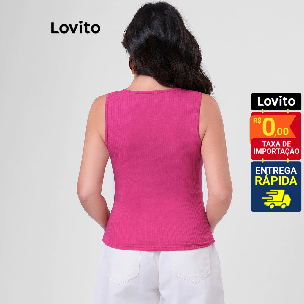 Lovito Regata Feminina Casual de Malha Canelada LB197BRL226