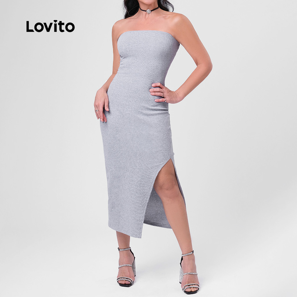 Lovito Vestido Sem Alças Midi Com Fenda Tubo Feminino LB166BRL195