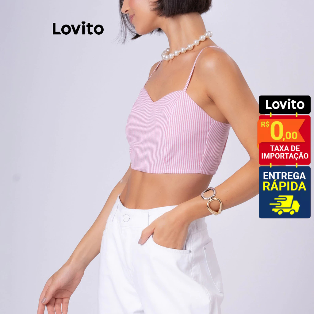 Lovito Top Regata Feminina Alça Fina Listrada LB337BRL366
