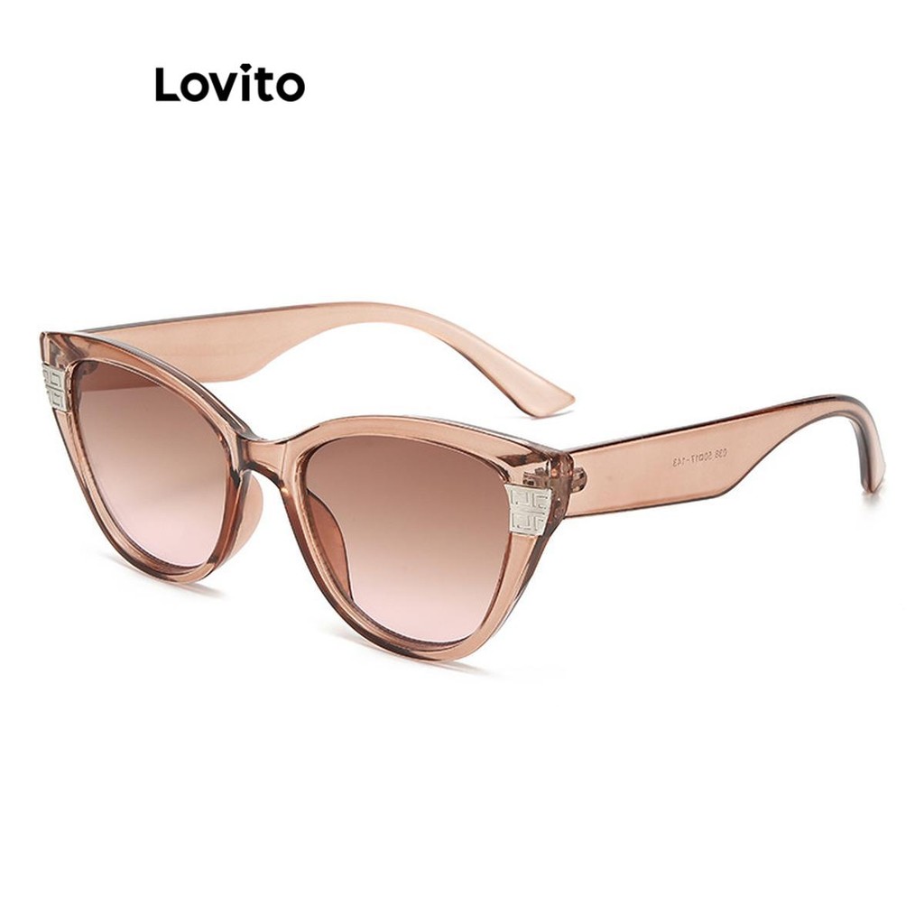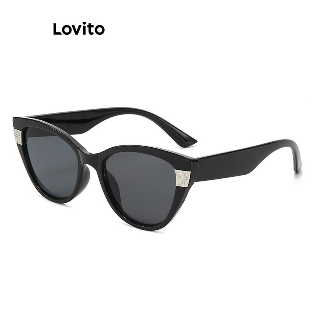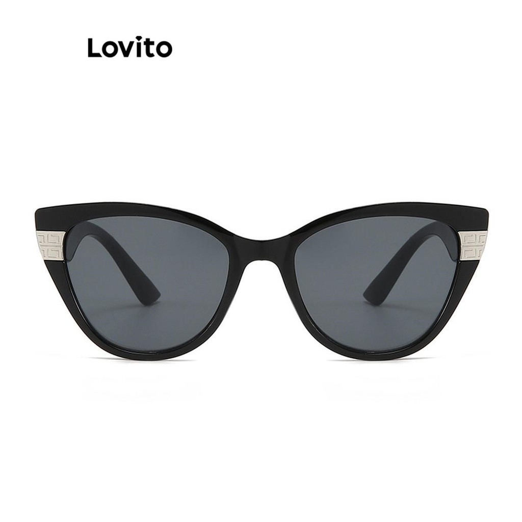 Lovito Óculos de sol casuais lisos com temperamento e olhos de gato com proteção Uv para mulheres LFA70016