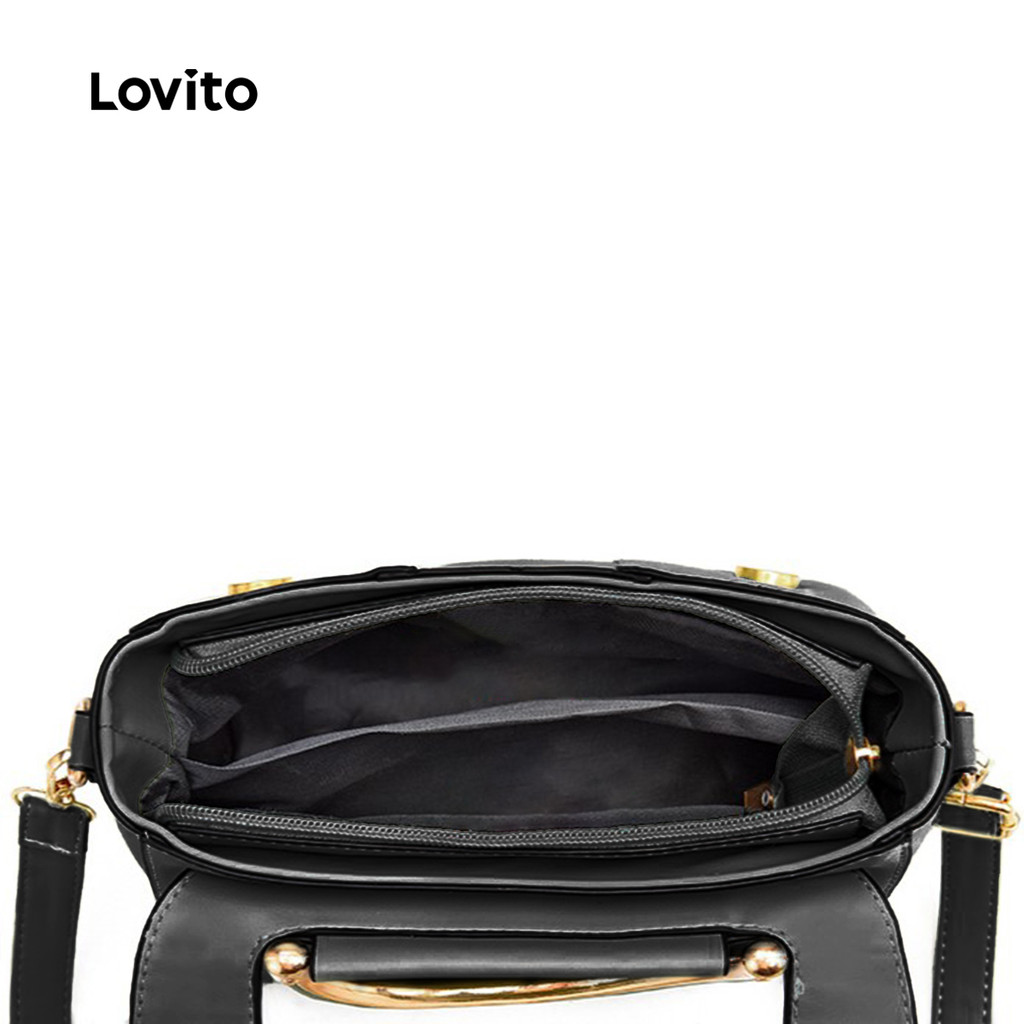 Lovito Bolsa de ombro pequena Casual lisa prática com vários zíperes para mulheres LFA74056