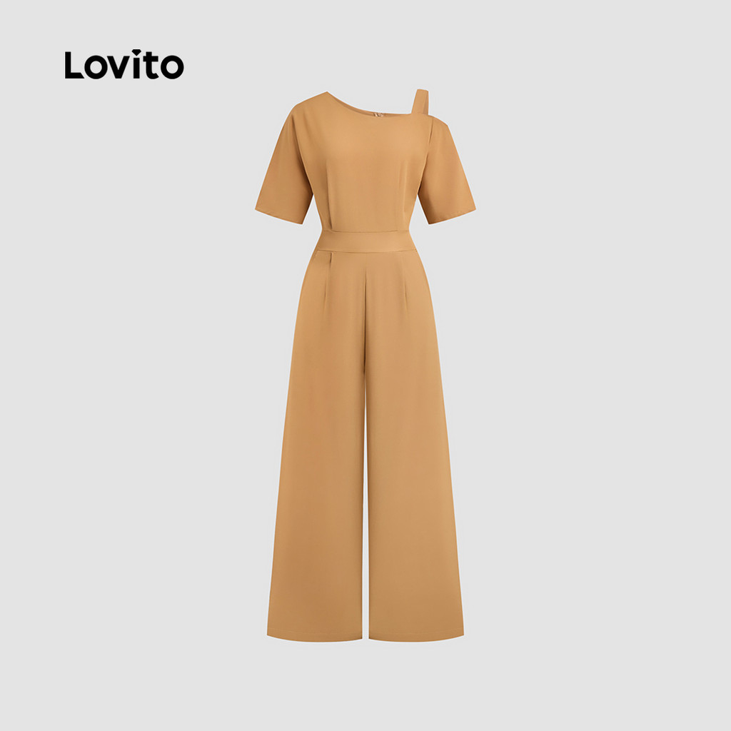 Lovito Elegante Simples Ombro Frio Estrutura Linha Verão Primavera Macacão Marrom Para Mulheres LBL25107