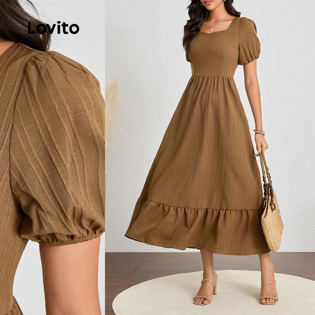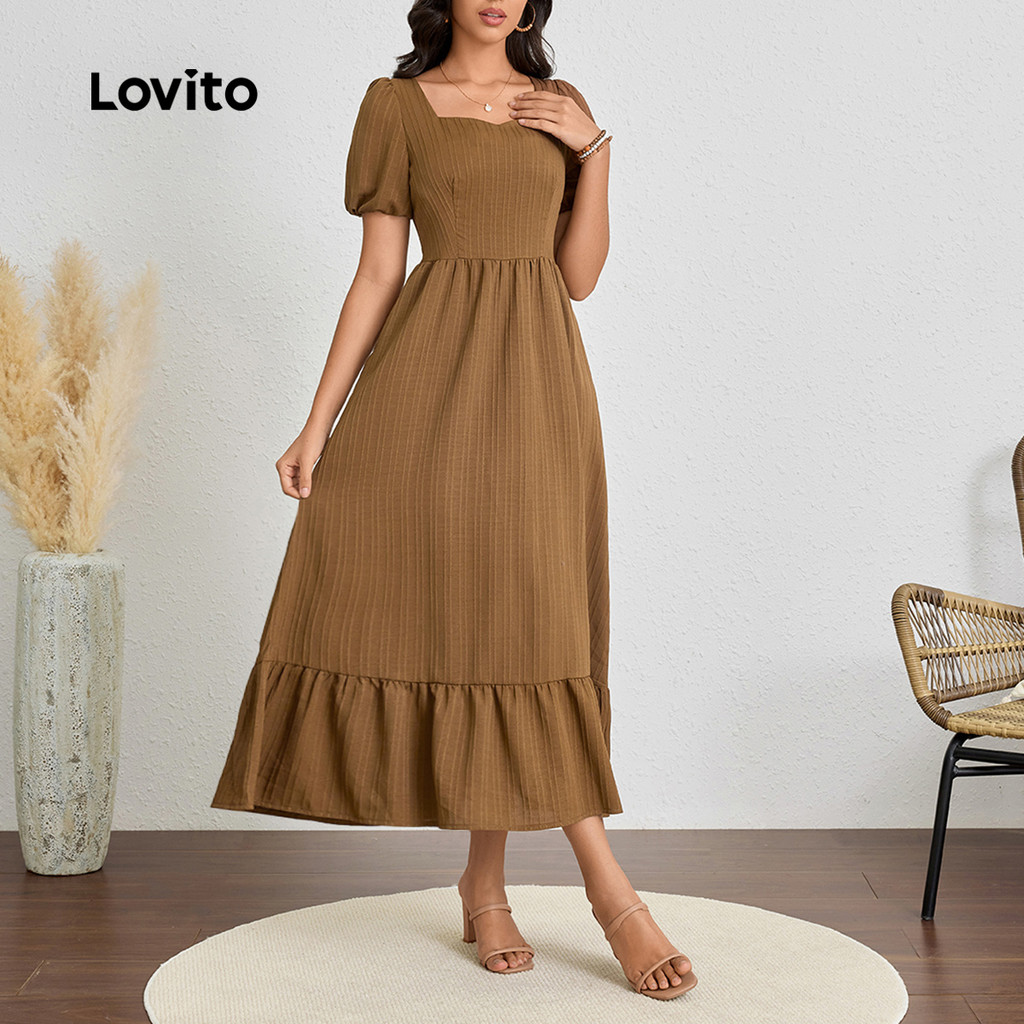 Lovito Vestido Jacquard elegante com costura em tecido liso para mulheres LBL23613