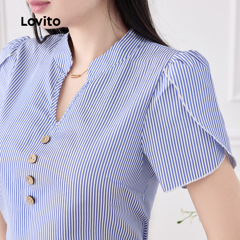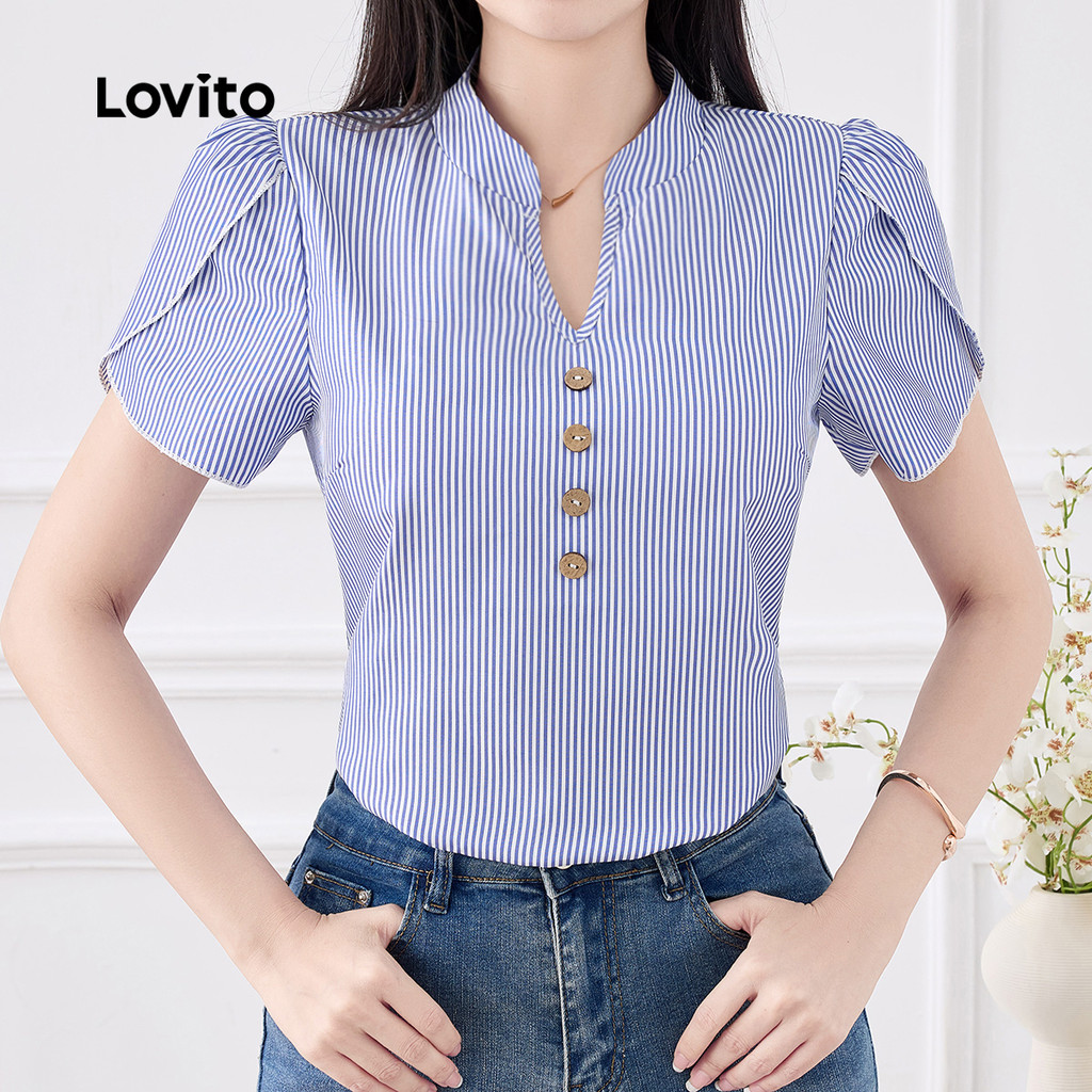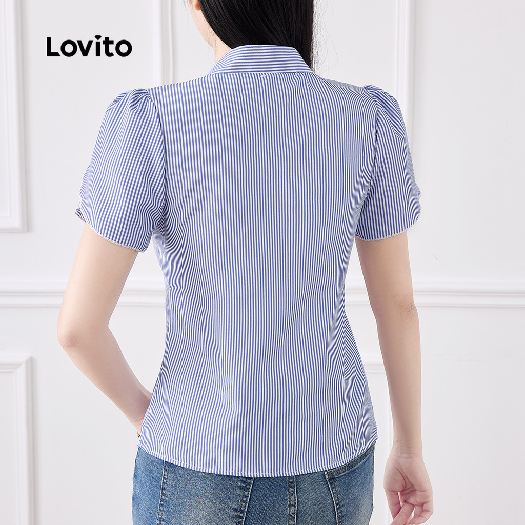Lovito Blusa Casual de Botão para Mulheres Blusa Azul de Primavera/verão Confortável e Casual L155AD281