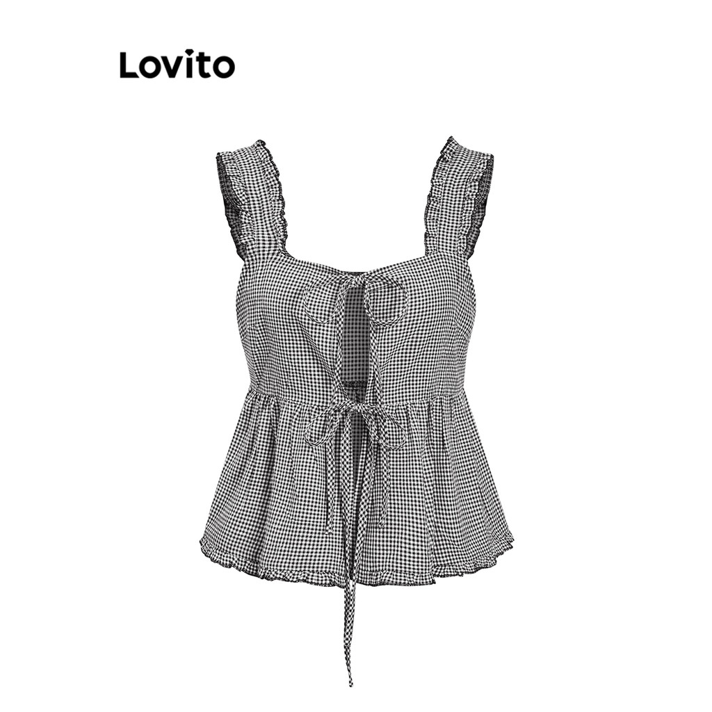 Lovito Regata Casual Com Gravata Guingão E Estrutura Frontal Regata Para Mulheres L95ED349-2