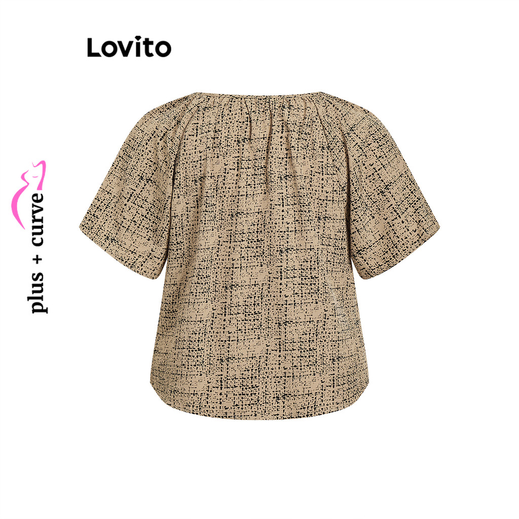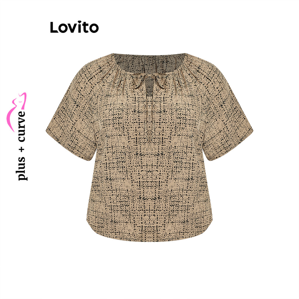 Lovito Blusa Curva Plus Size Boho Geométrica Com Babados E Renda Para Mulheres LBL15474