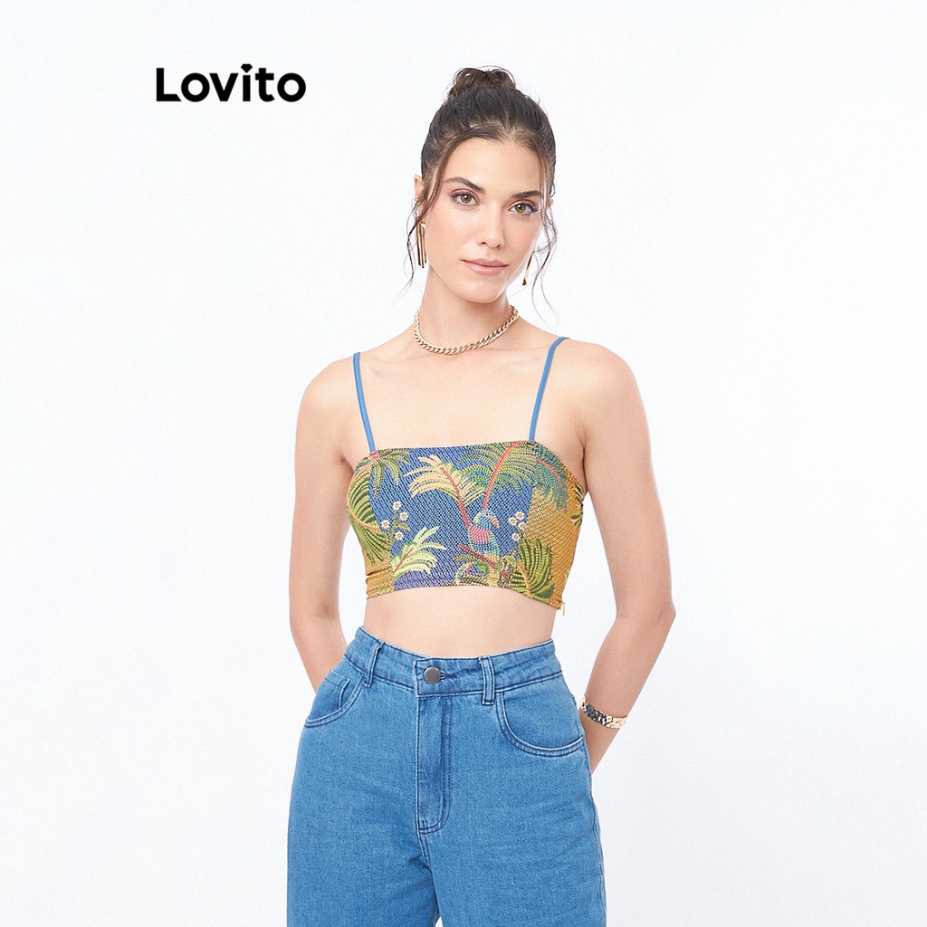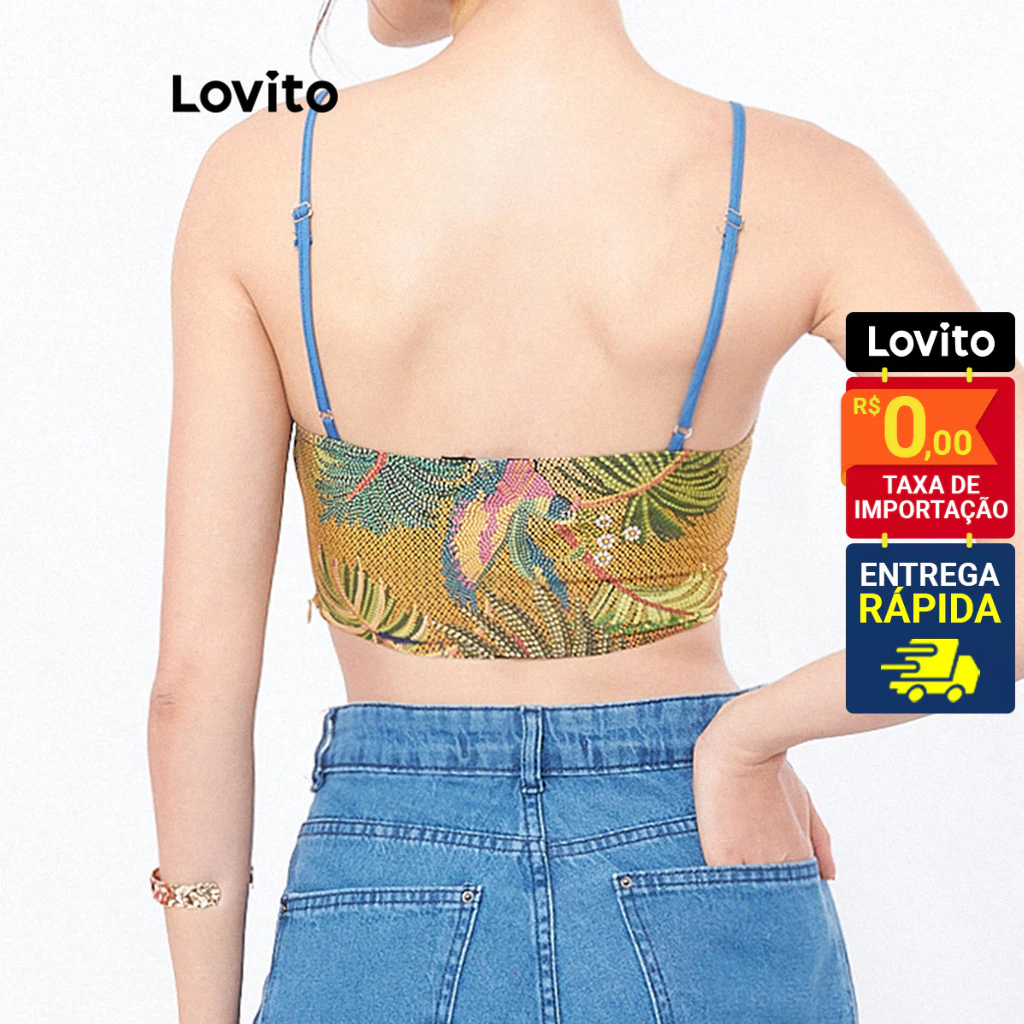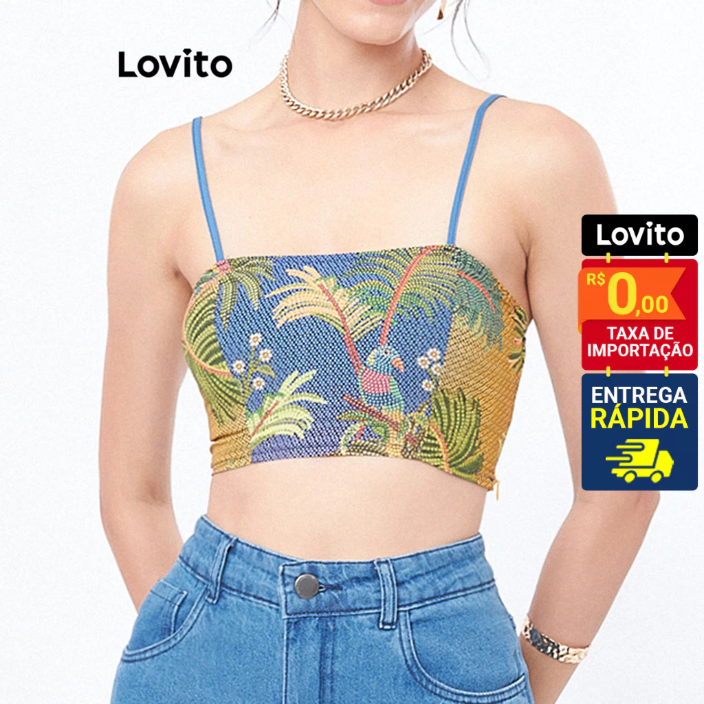 Lovito Top Regata Feminino Faixa Estampado LB294BRL323