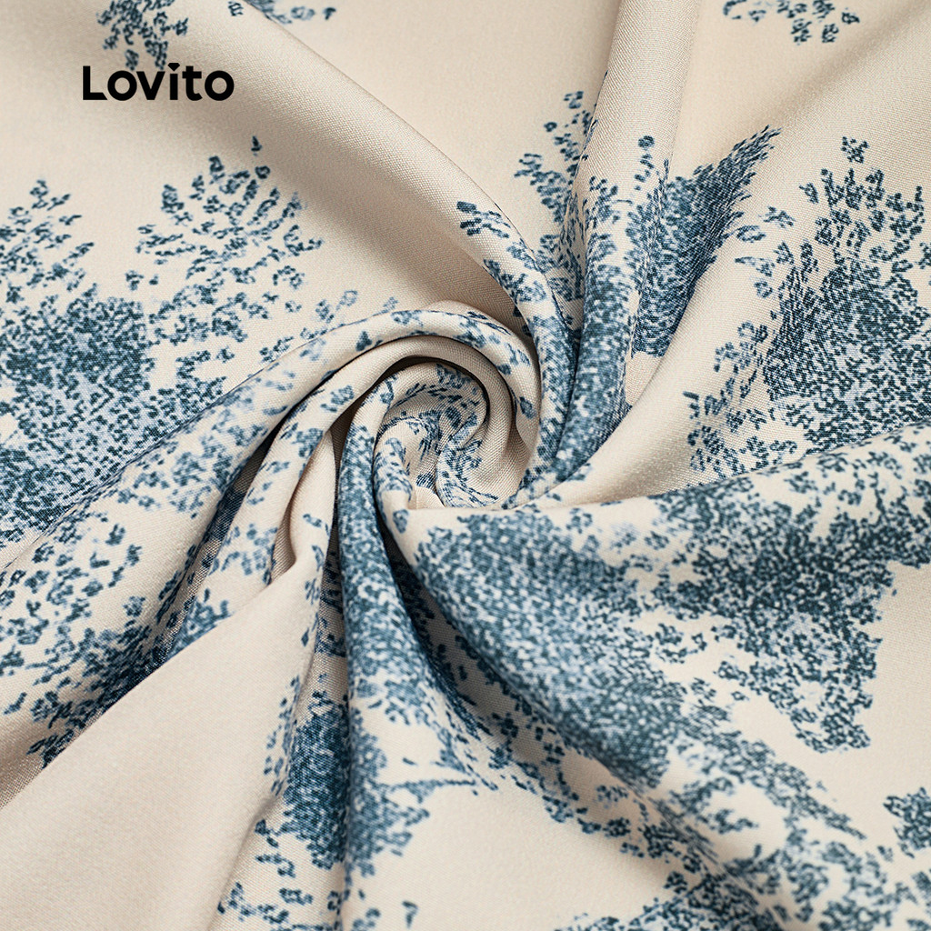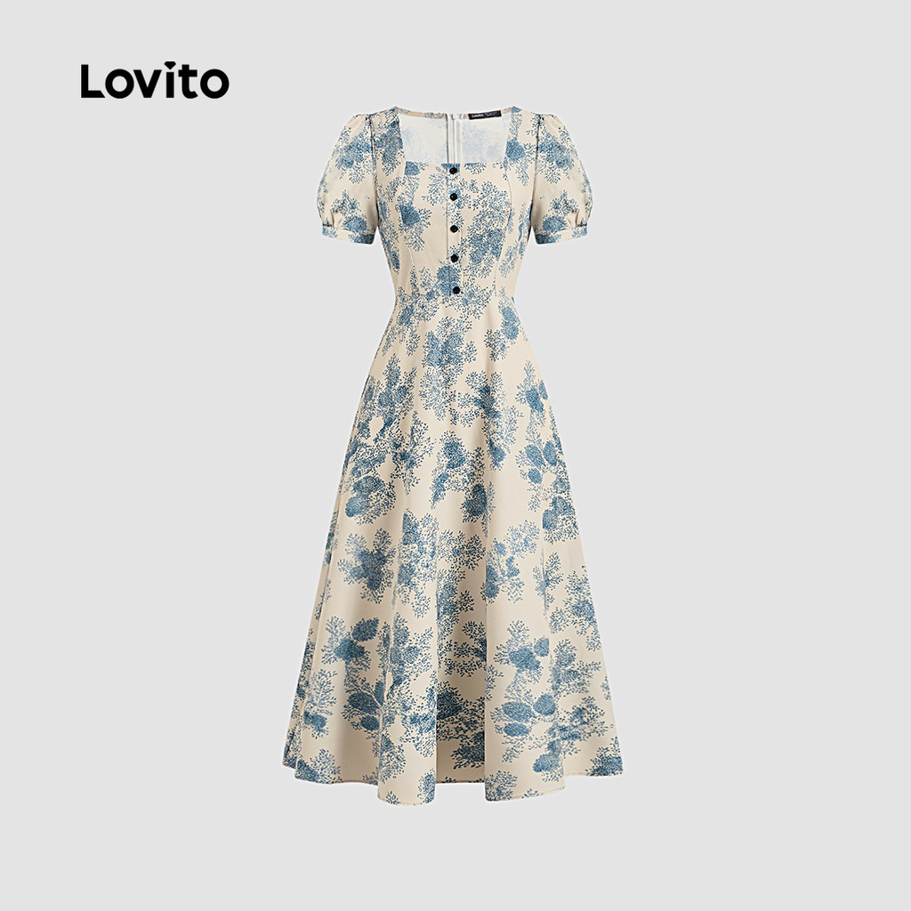 Lovito Vestido Boho com Botões Na Frente Linha de Estrutura Primavera/verão Vestido azul L142ED161