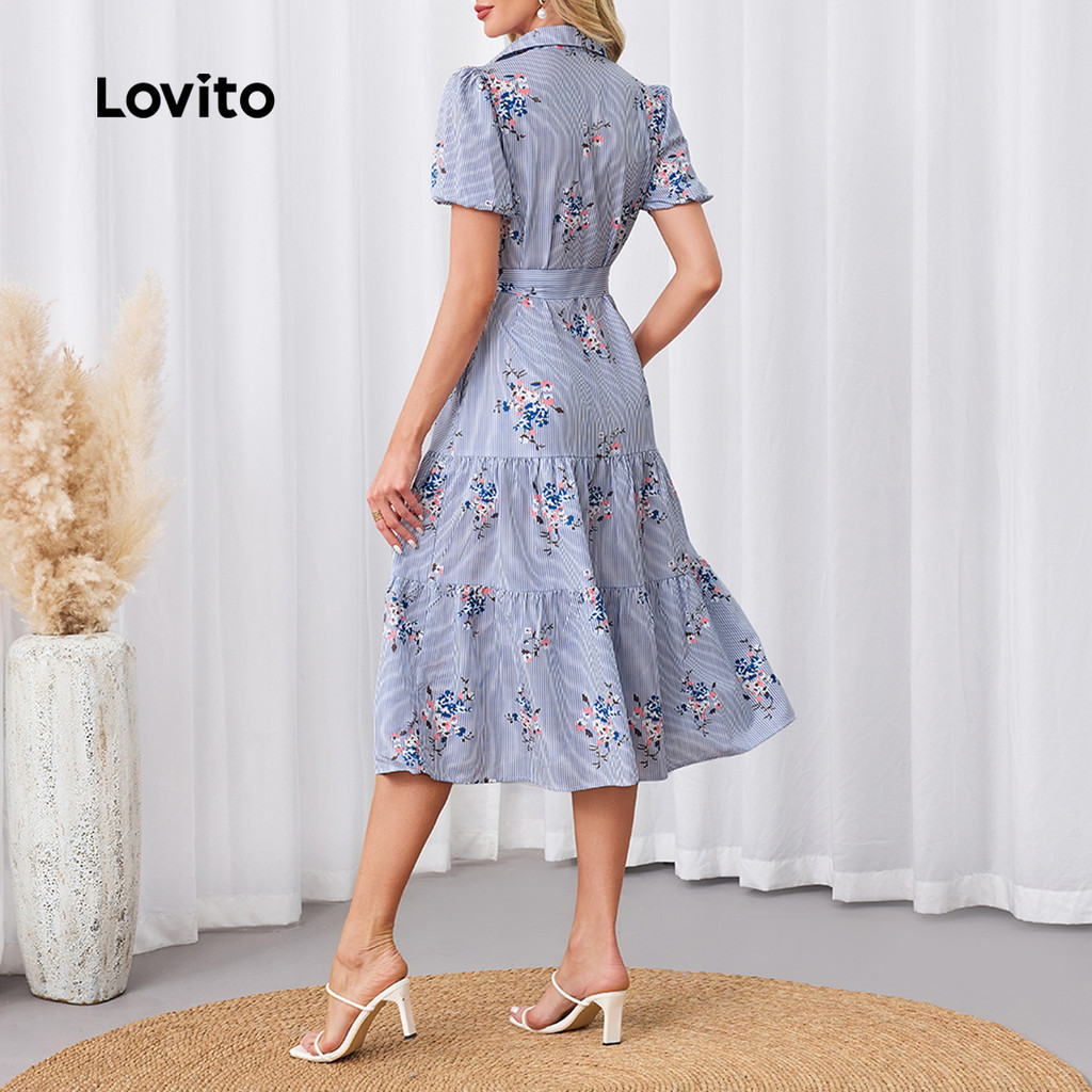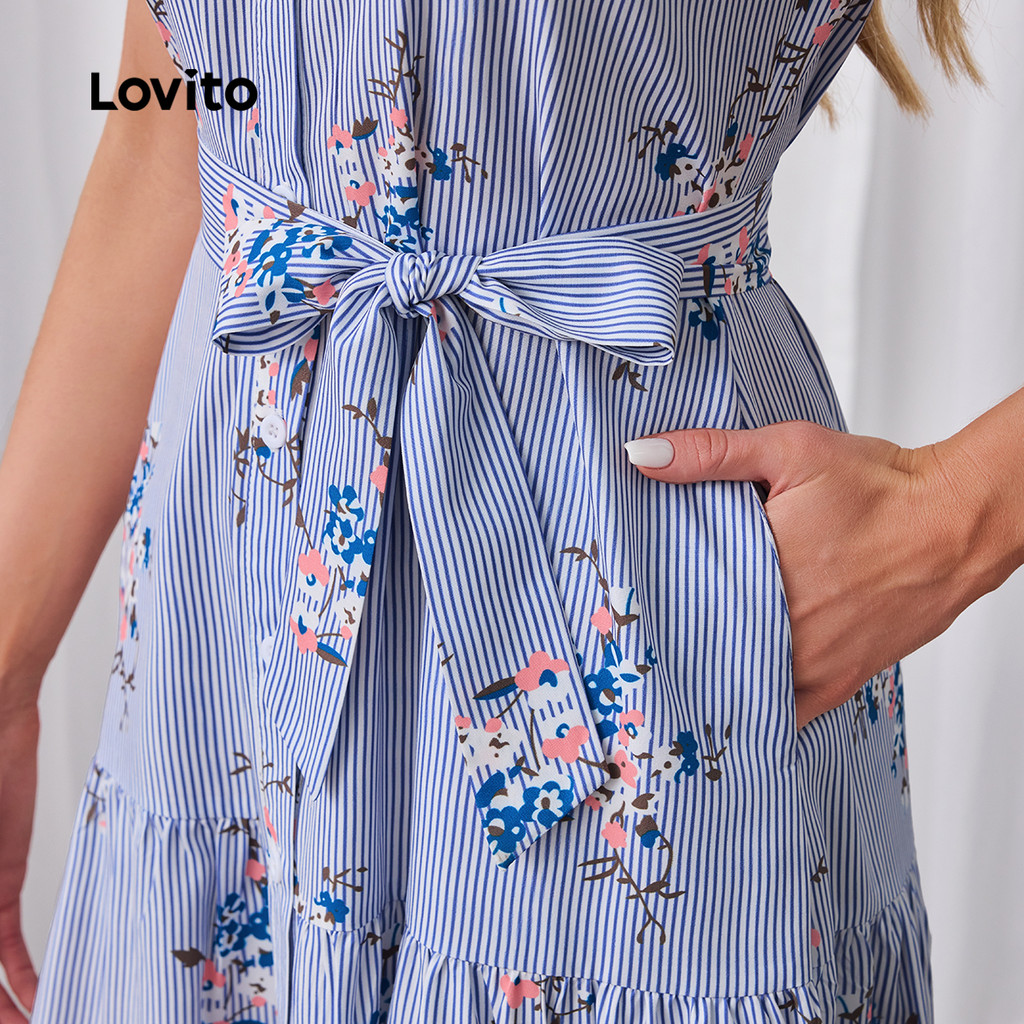 Lovito Vestido Casual Listrado Em Camadas Verão/Primavera Vestido Com Cinto Para Mulheres LBL23679