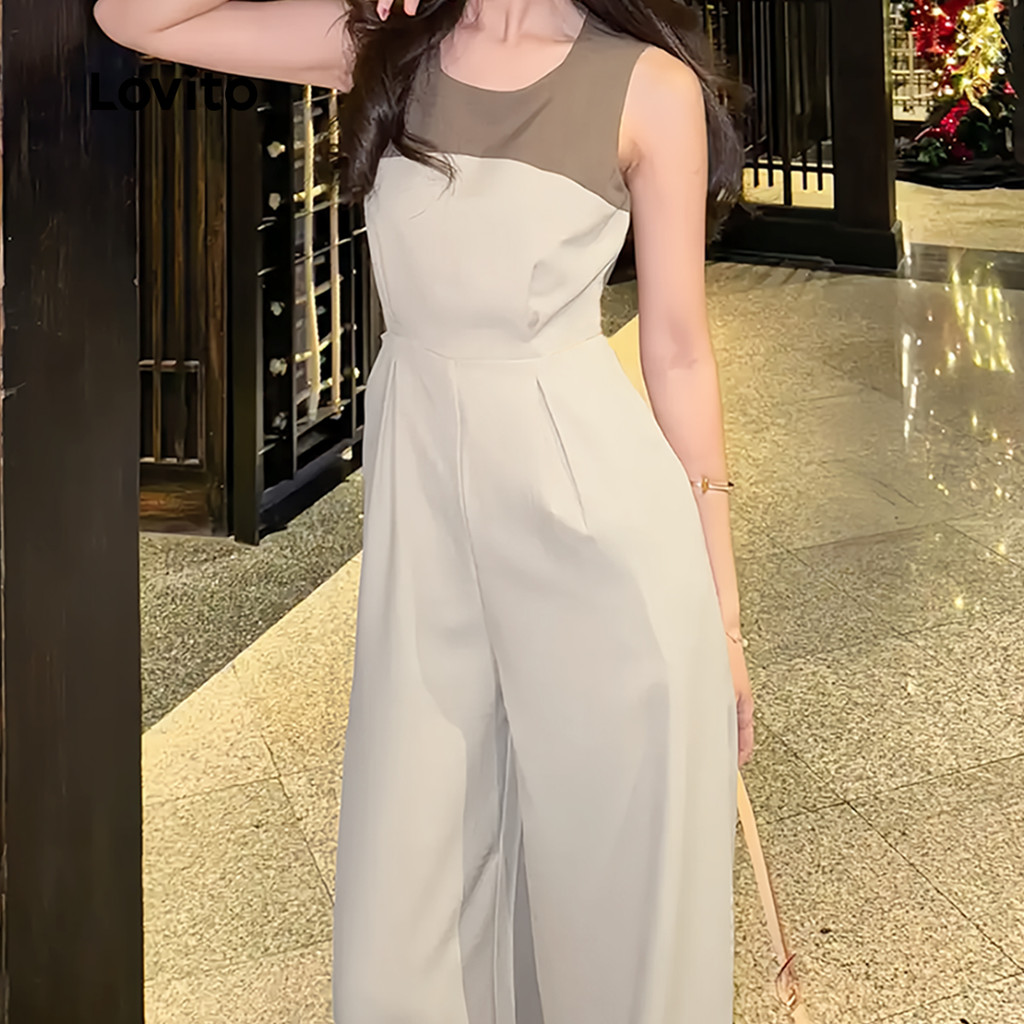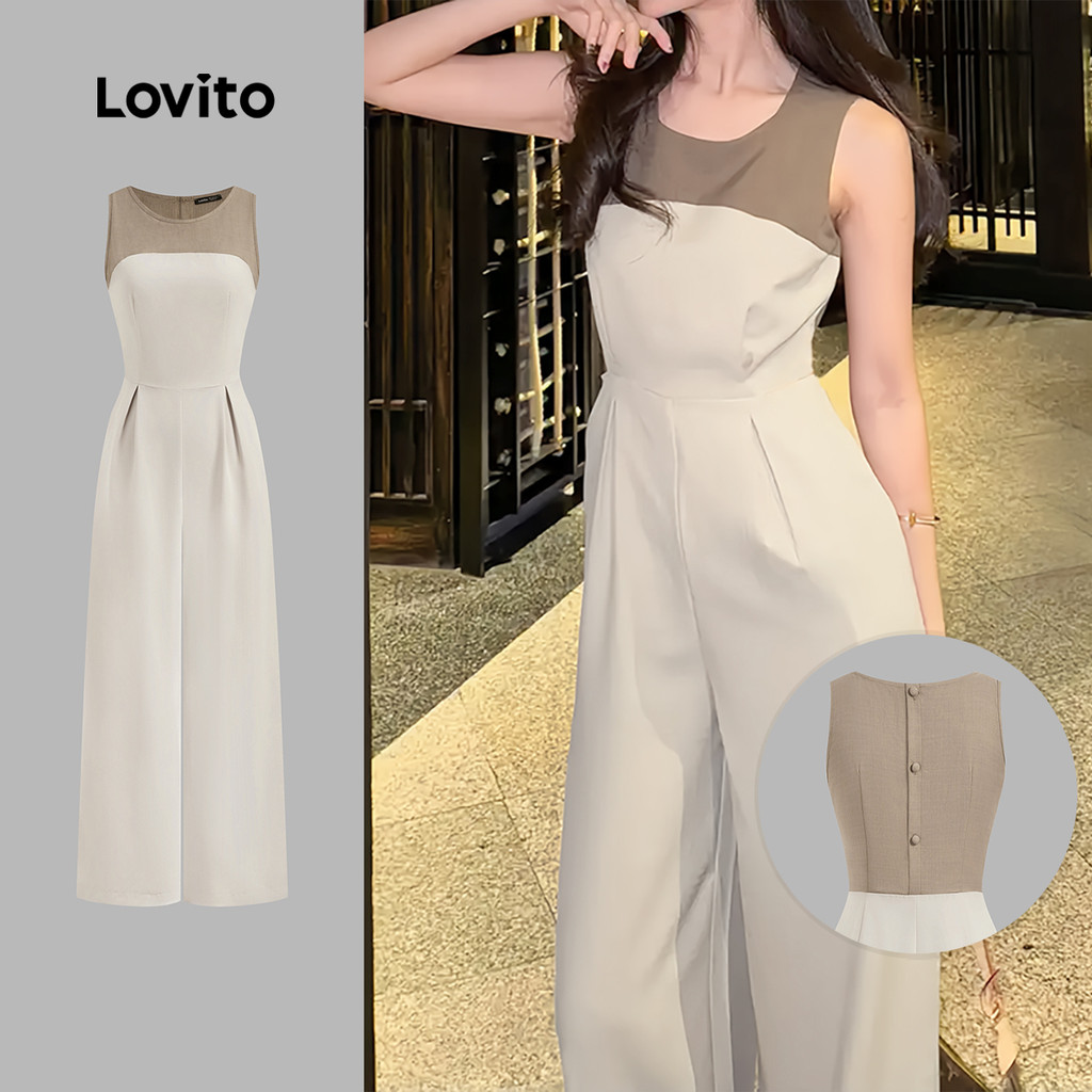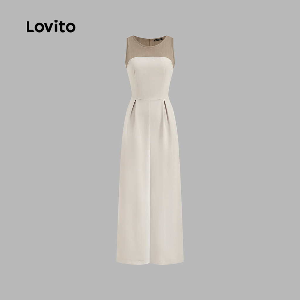 Lovito Macacão Casual De Tecido Liso Com Costura Plissado Para Verão/primavera Para Mulheres L128ED413