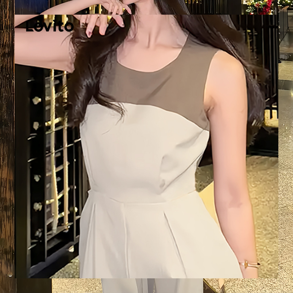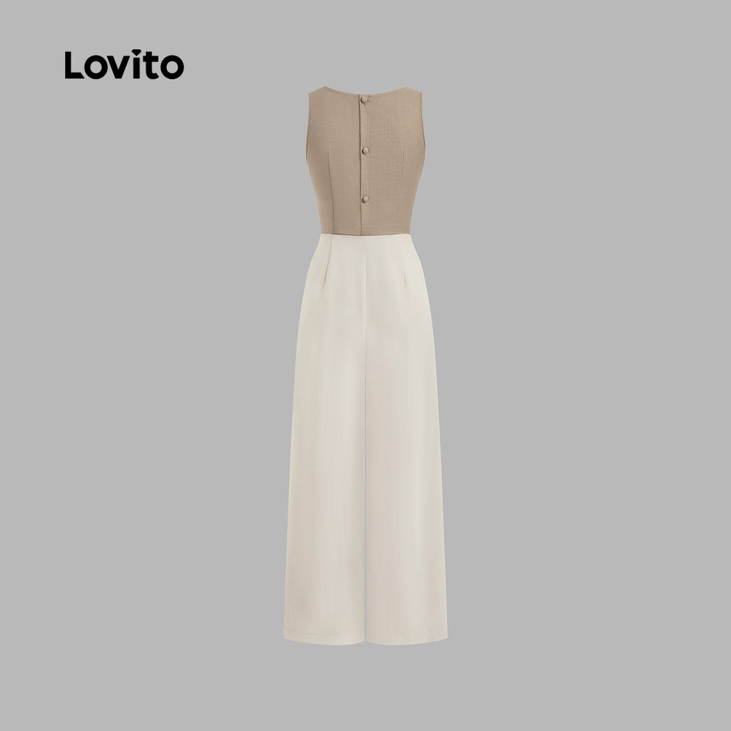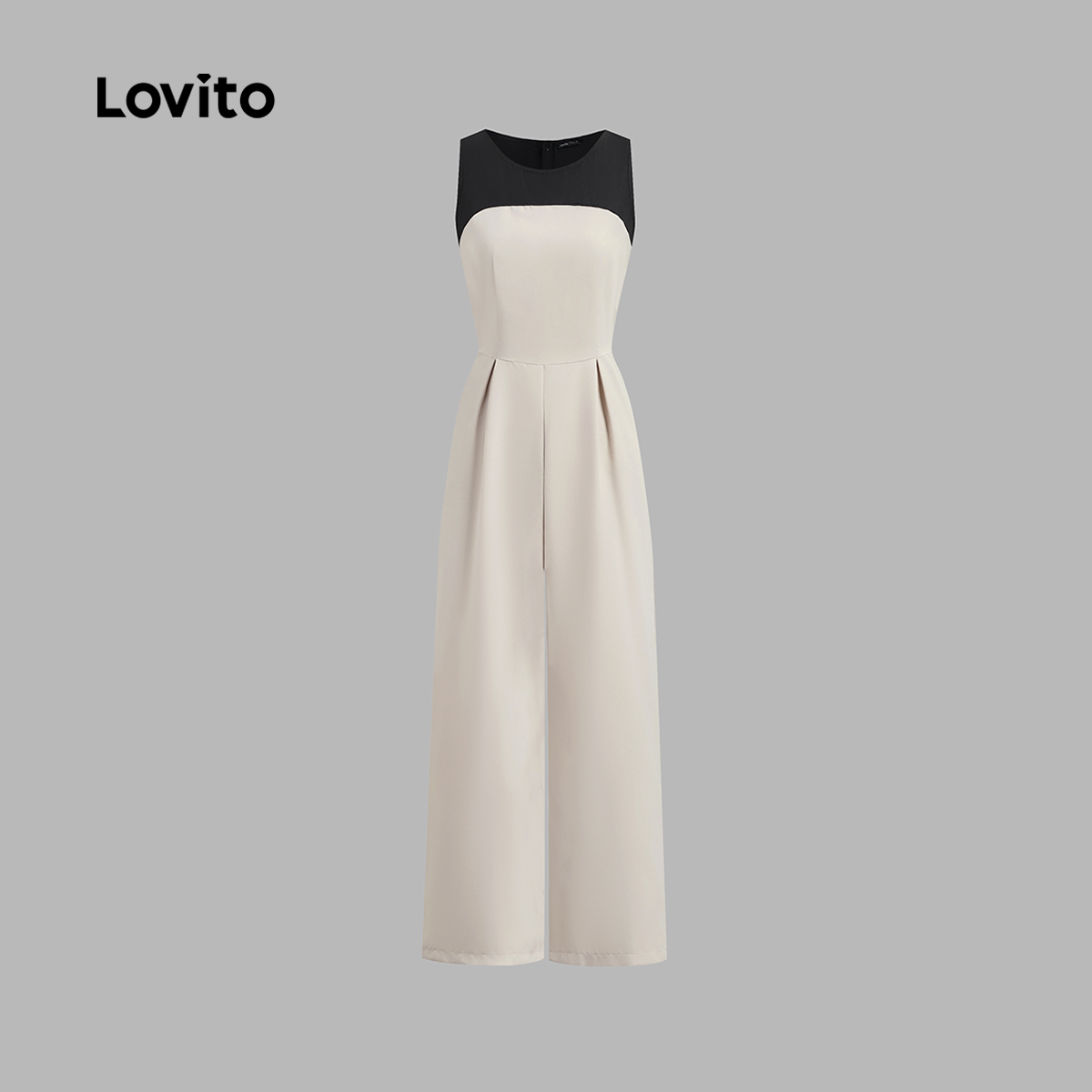Lovito Macacão Casual De Tecido Liso Com Costura Plissado Para Verão/primavera Para Mulheres L128ED413