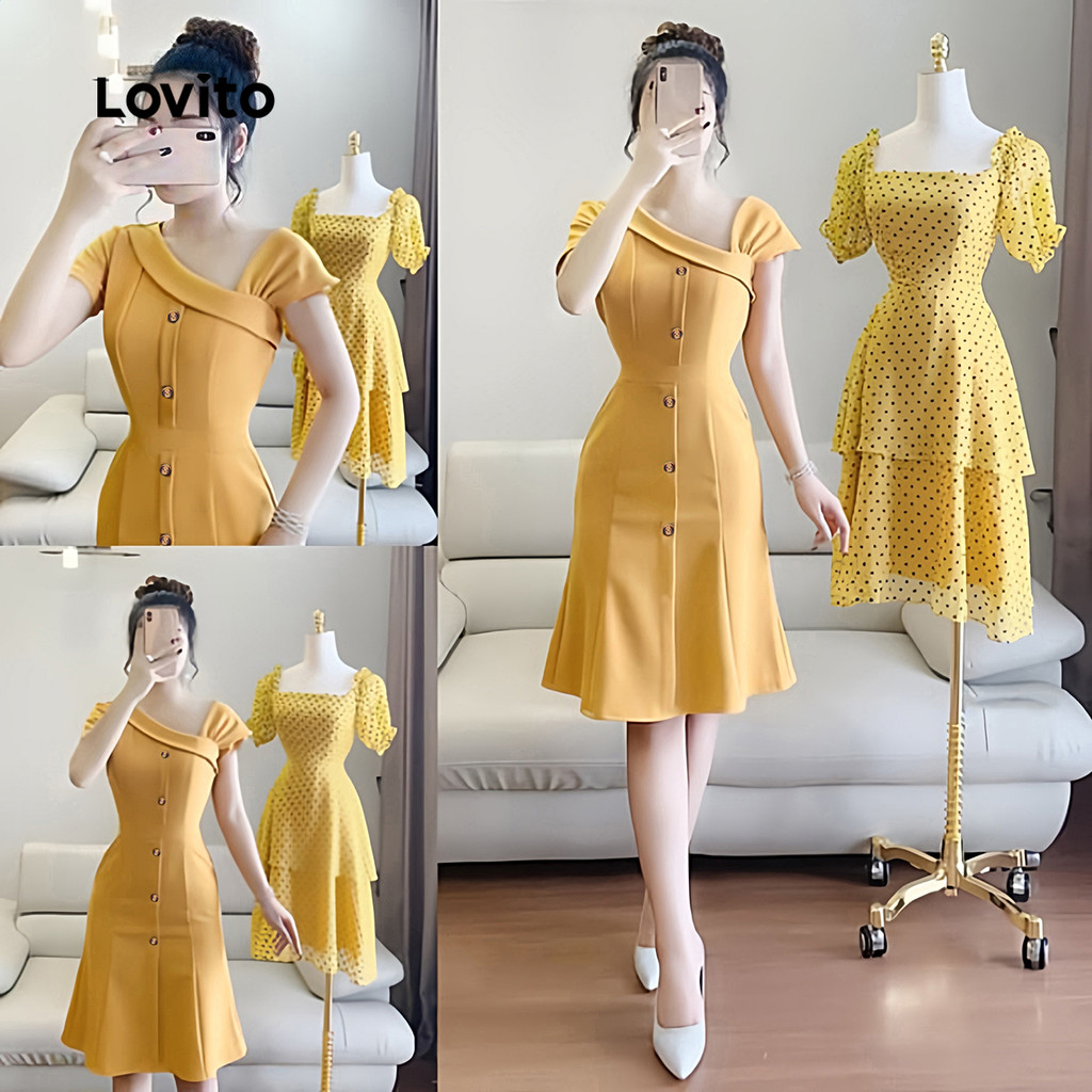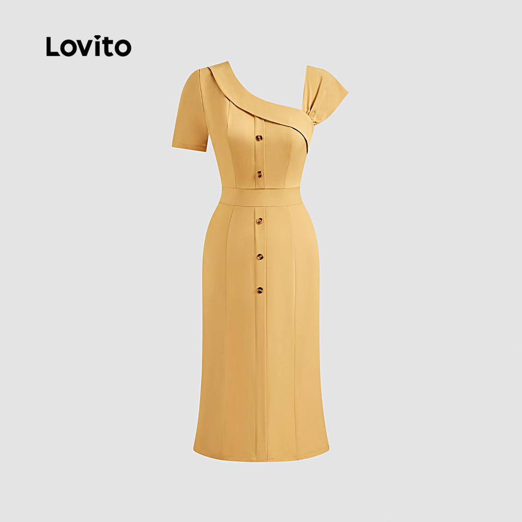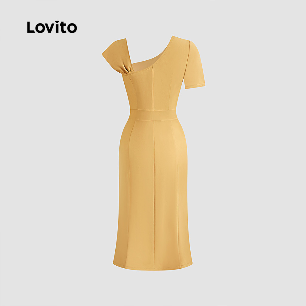 (Trendy) Lovito Vestido Casual liso assimétrico para mulheres L128ED405