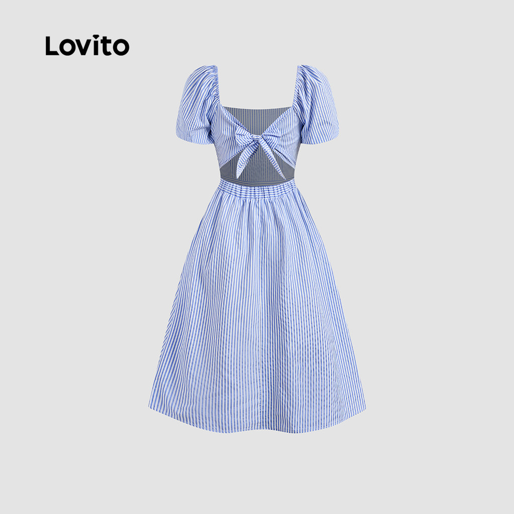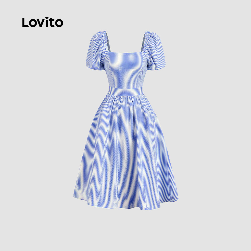 (New) Lovito Vestido Casual Plissado de Primavera/verão Azul para Mulheres L149ED394