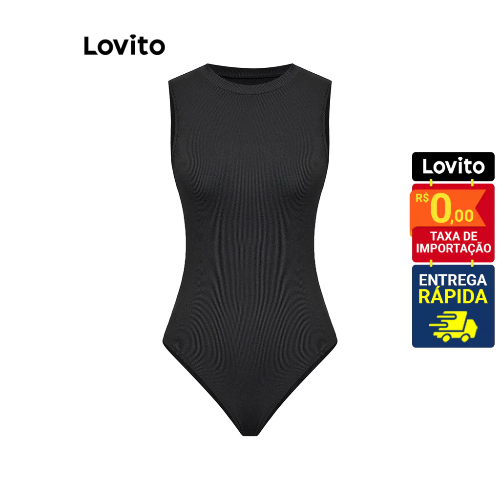 Lovito Body Feminino Gola Halter Sem Mangas Liso Básico LNE31011