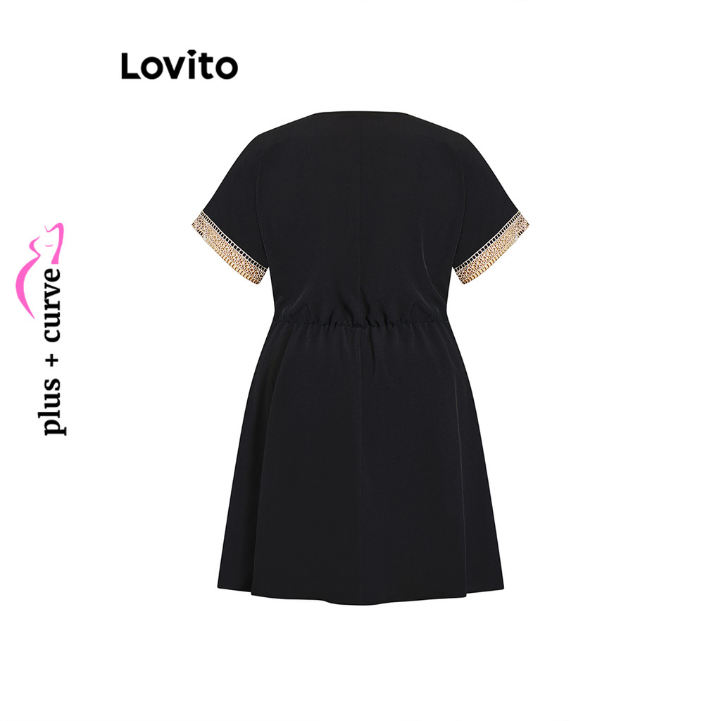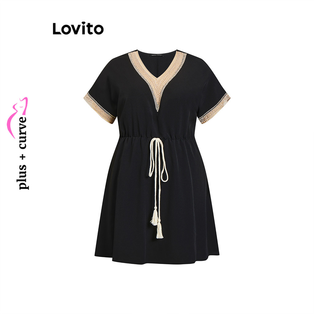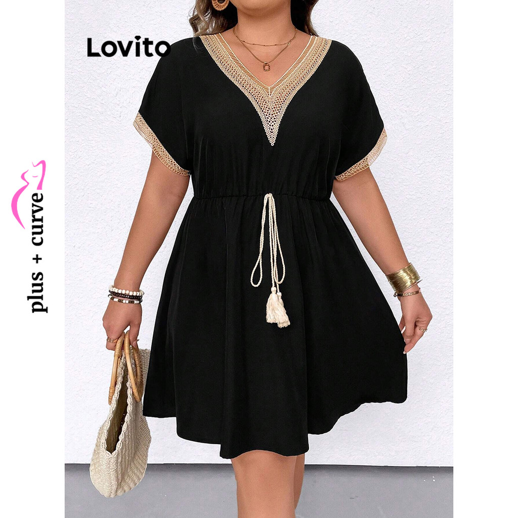 Lovito Vestido De Renda Plus Size Elegante Vestido De Borla Lisa Para Mulheres LBL16140