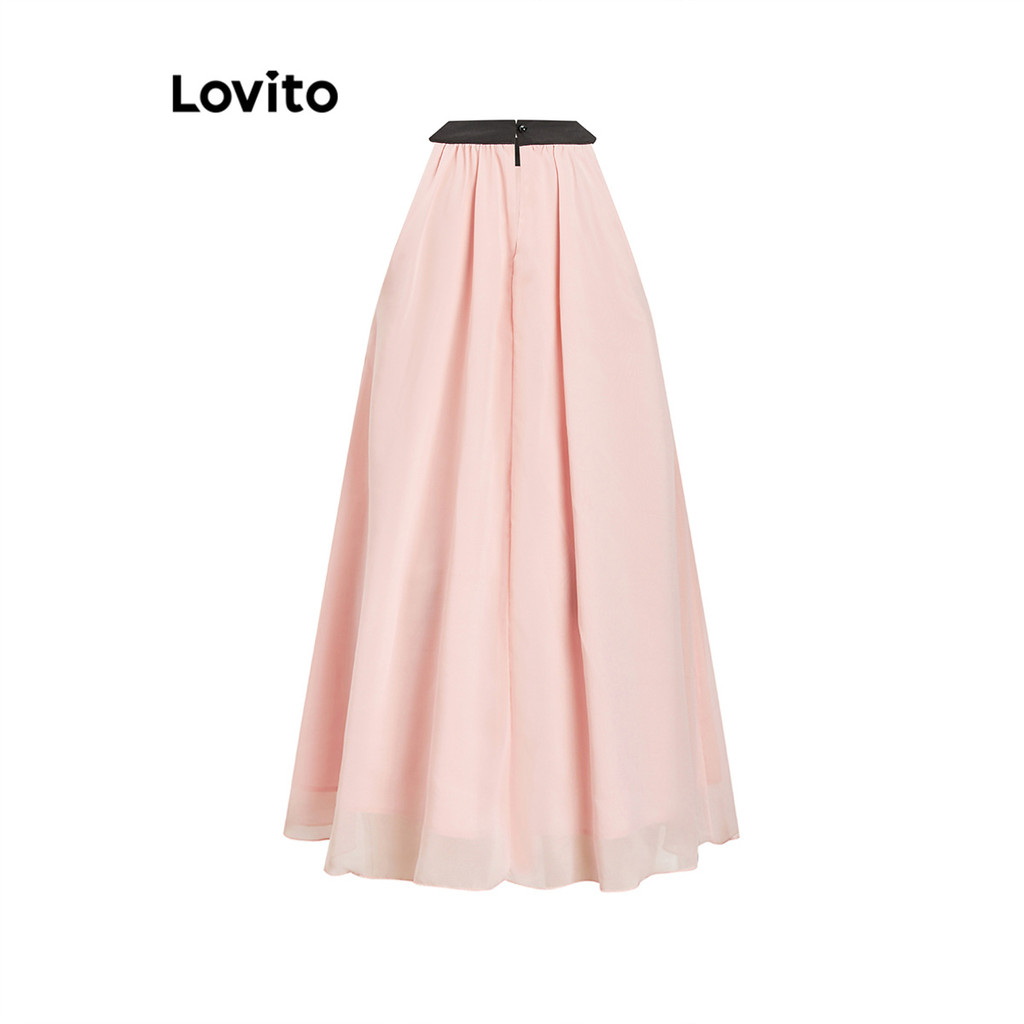 Lovito Vestido Casual Liso De Camada Dupla Com Gola Contrastante E Gravata Frontal Para Mulheres L109MD177