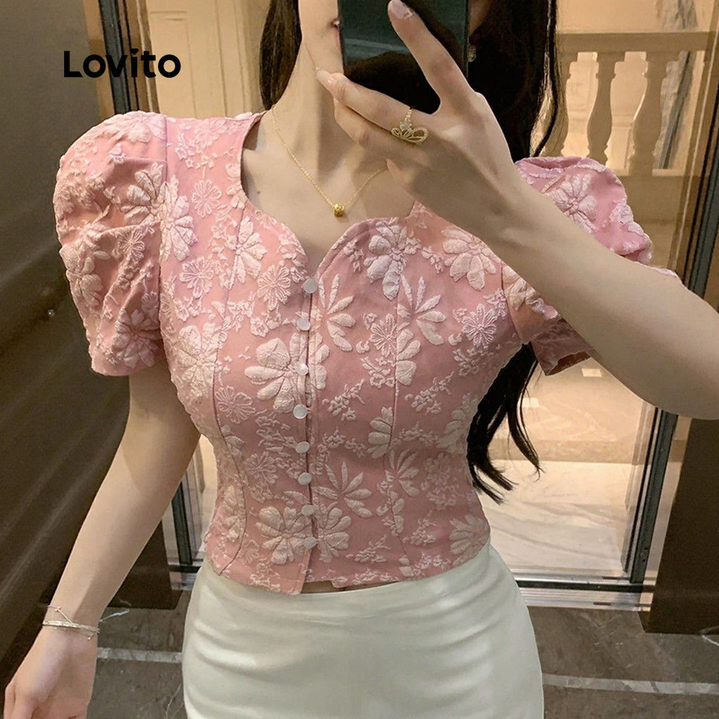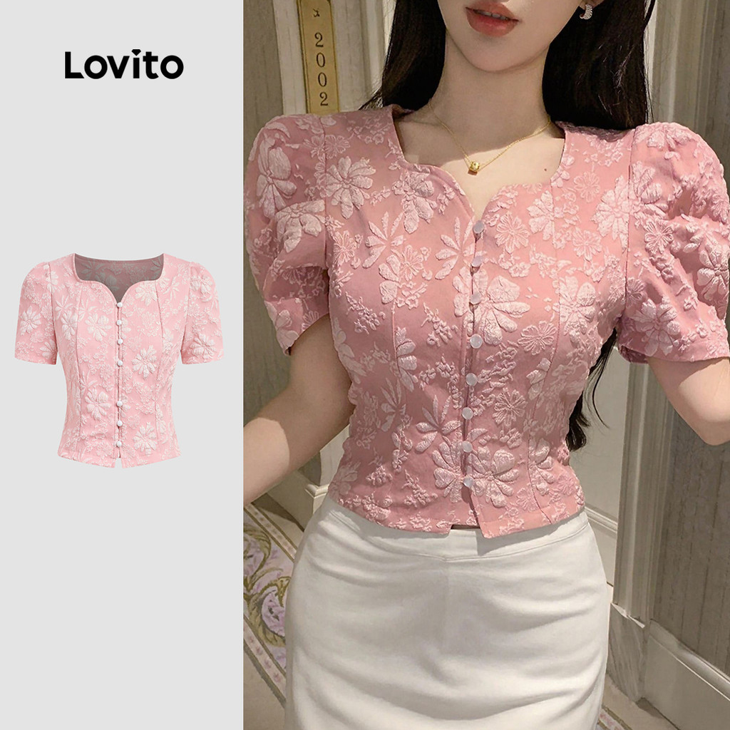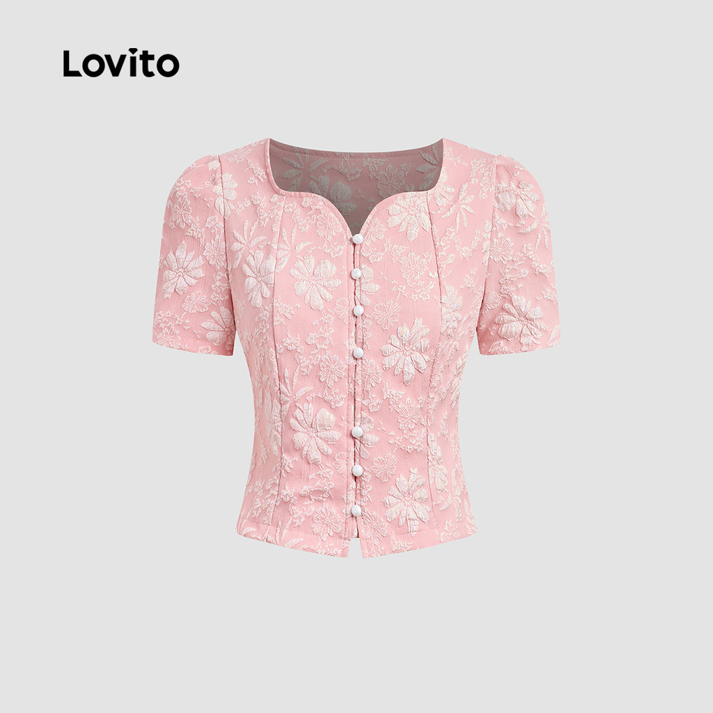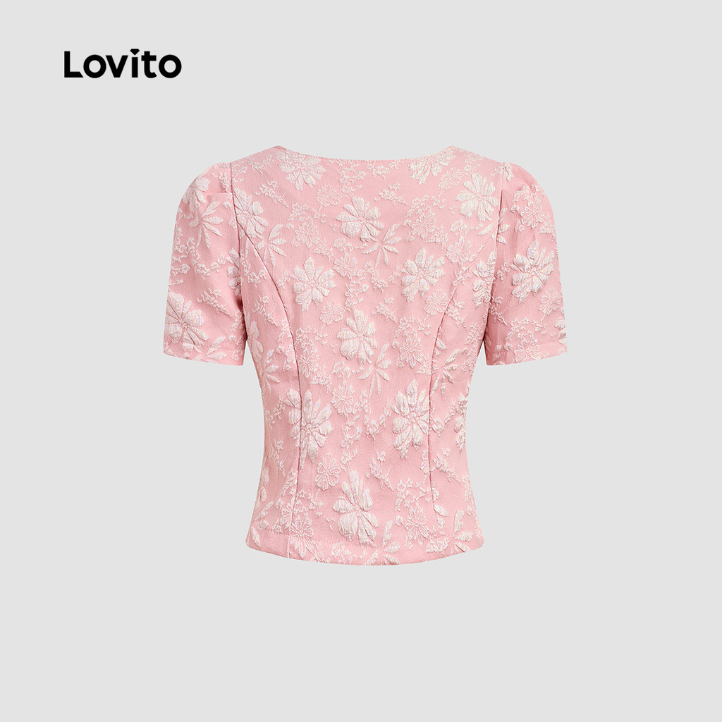 Lovito Blusa Elegante Jacquard com Franzido Primavera/verão Blusa Rosa para Mulheres L154ED293