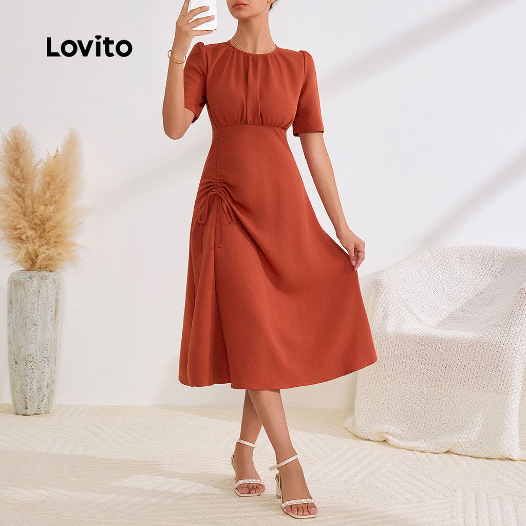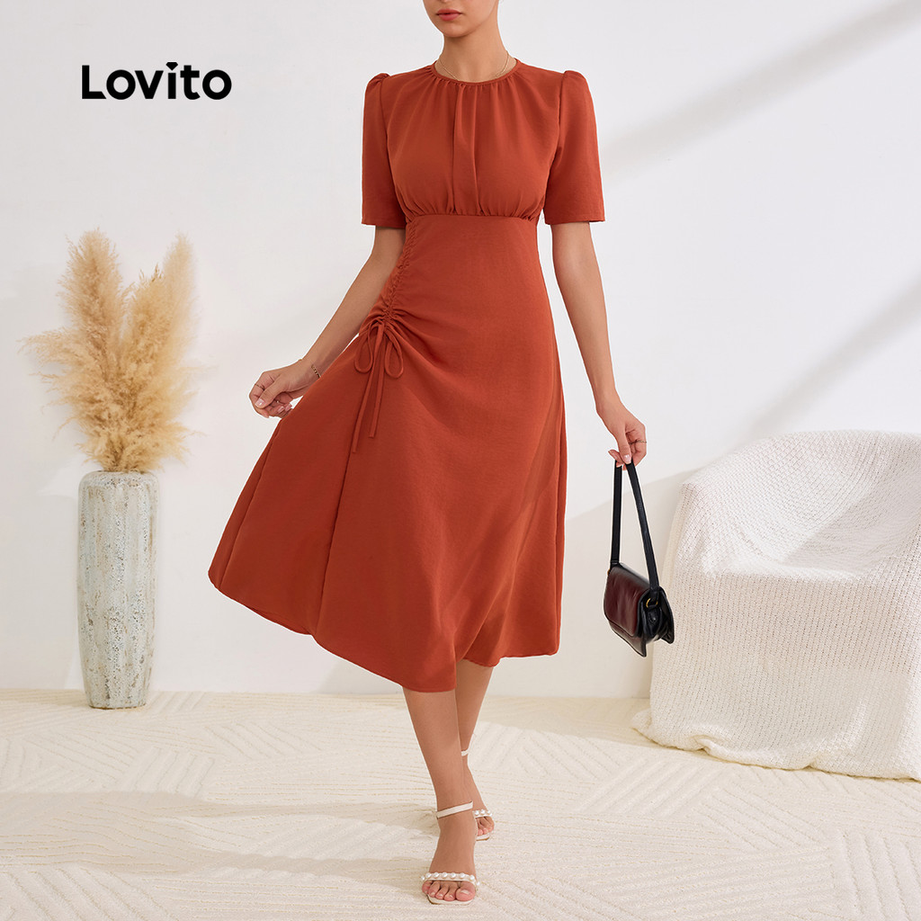 Lovito Vestido Boho Liso Com Cordão E Vestido De Verão/primavera Para Mulheres LBL24565