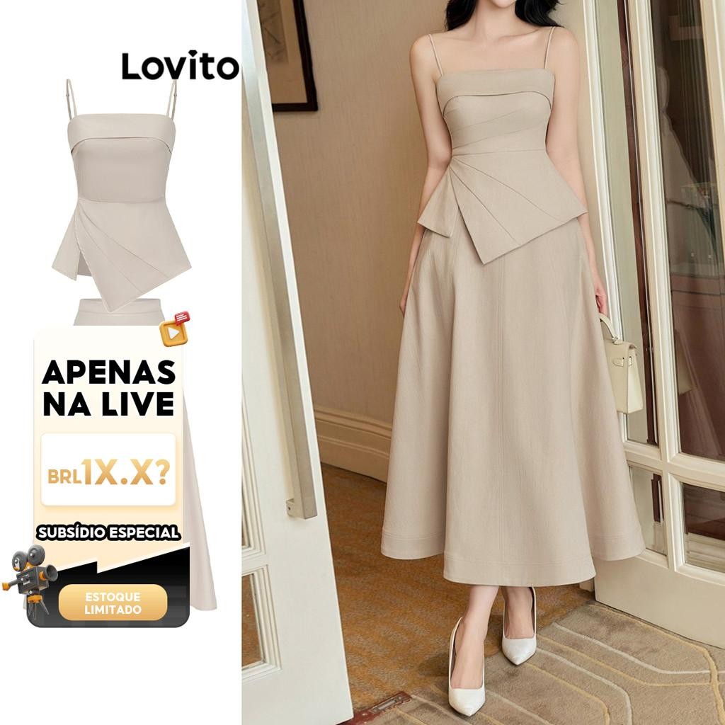 (Live Hosts' pick) Lovito Top ou parte inferior plissada lisa elegante feminina L105MD350
