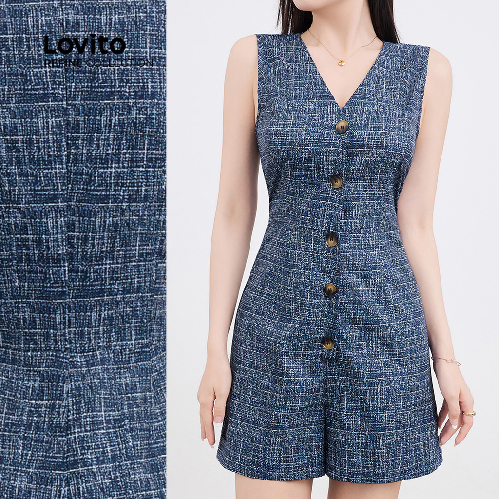 Lovito Macacão Casual Liso Com Botão Frontal Primavera/Verão Preto Para Mulheres L135A2D167
