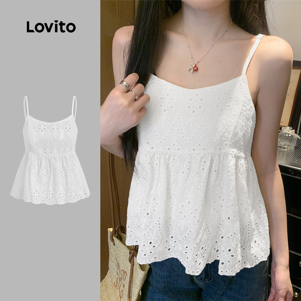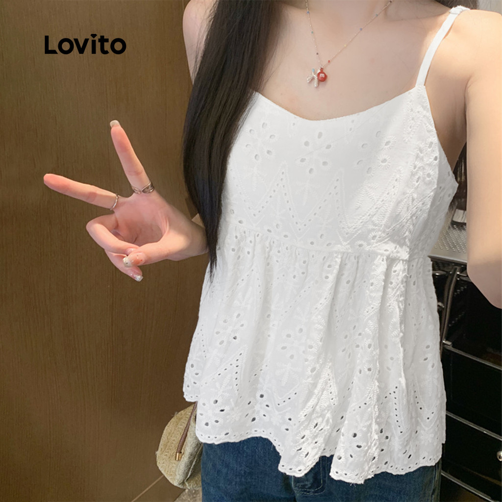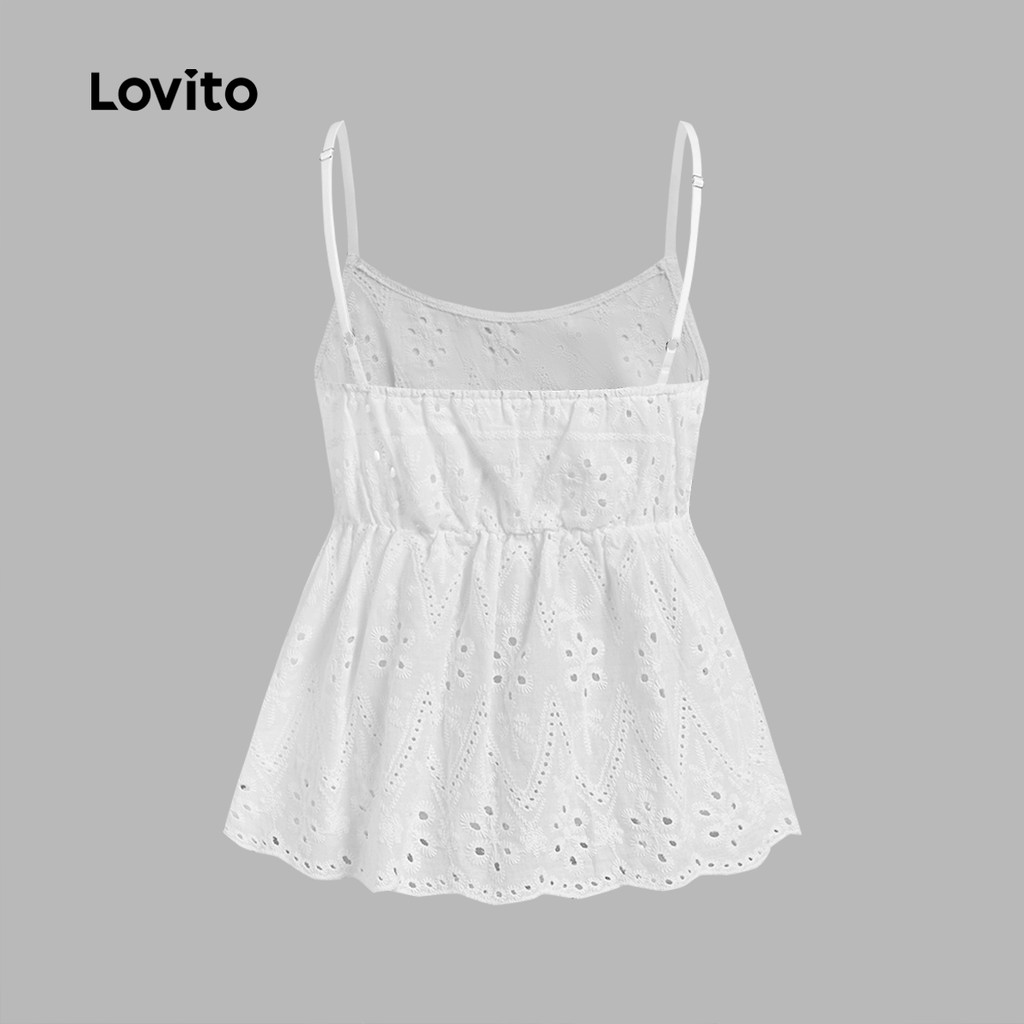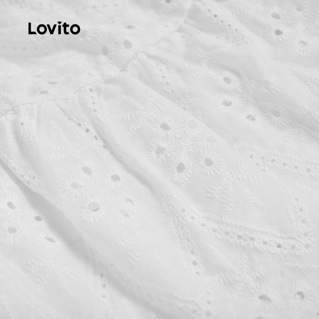 Lovito Blusa Casual Fina Transparente Bordado Inglês Macia Confortável Na Off-white Ideal Para Primavera/verão L137ED199