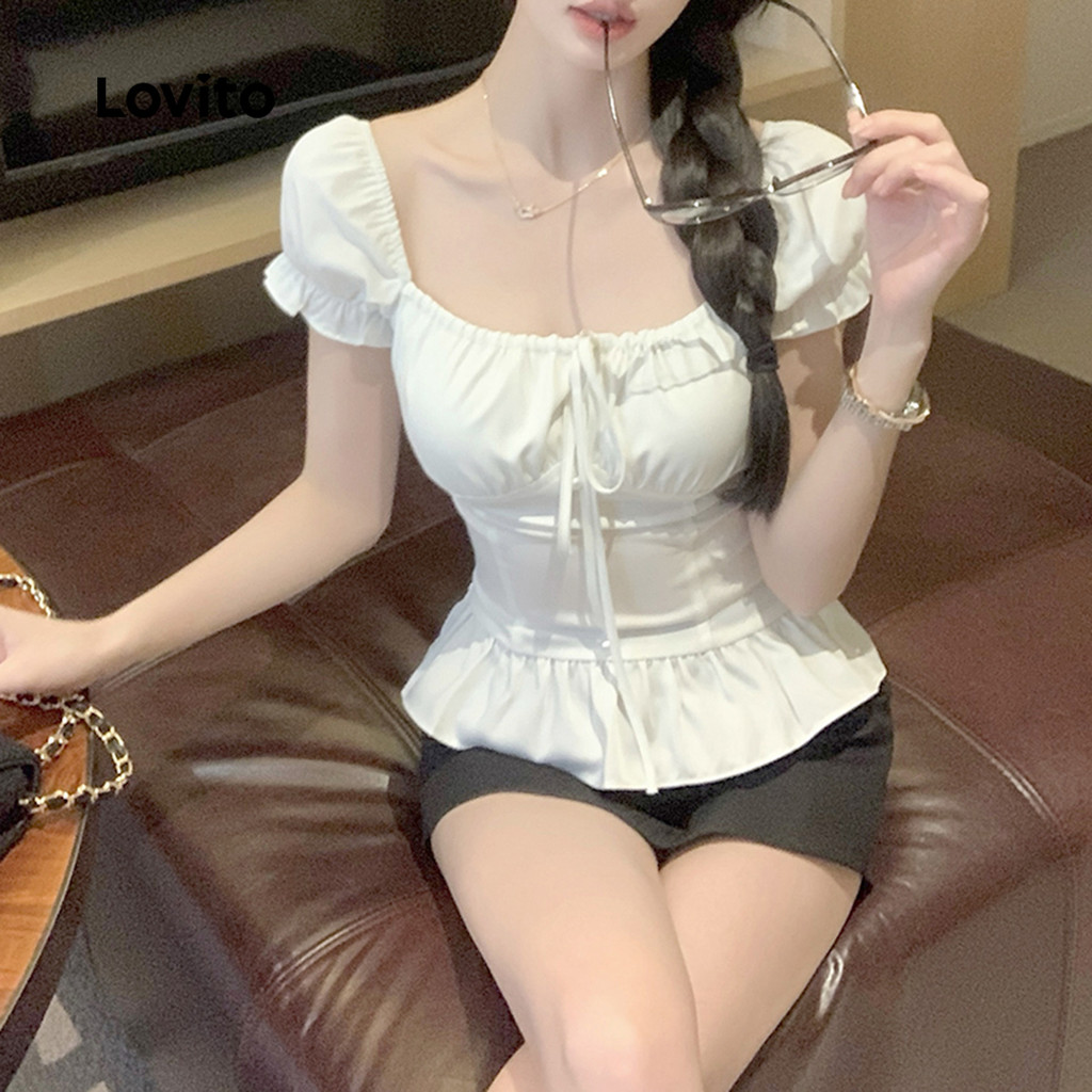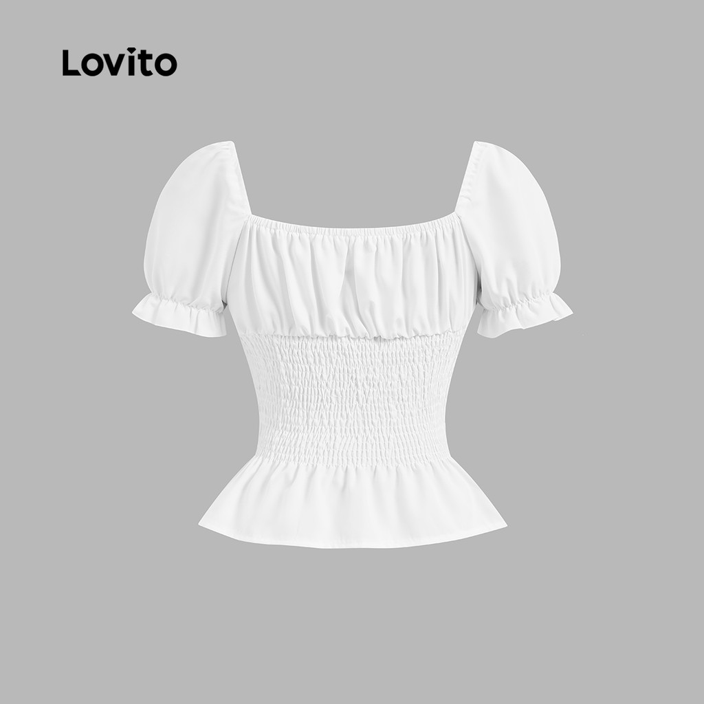 (Trendy) Lovito Blusa Casual lisa com babados para mulheres L123ED727