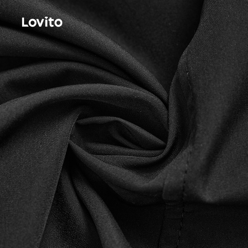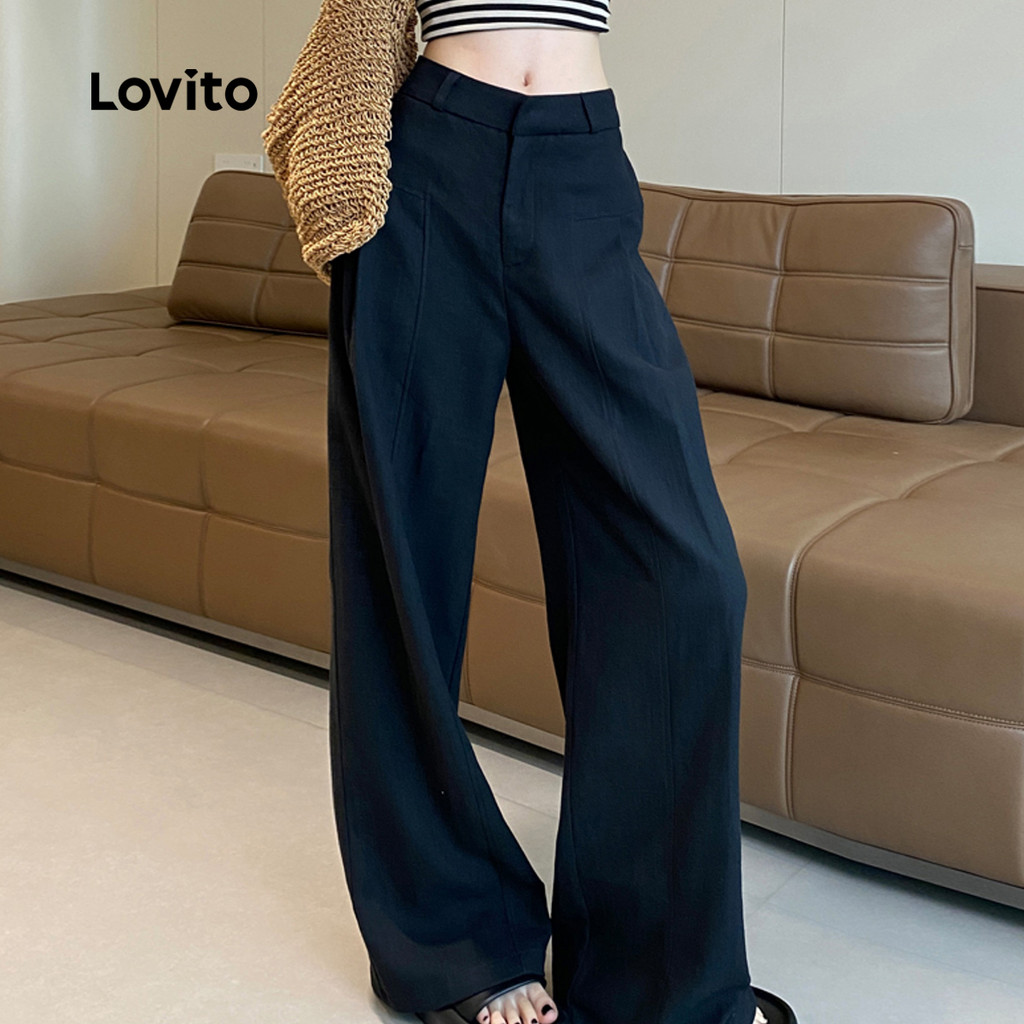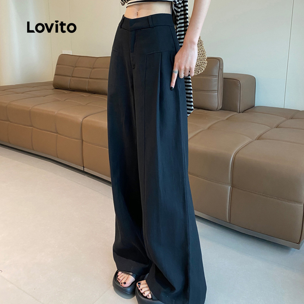 Lovito Calças Casuais de Lazer para Deslocamento Todas As Estações Calças Pretas para Mulheres L156AD227